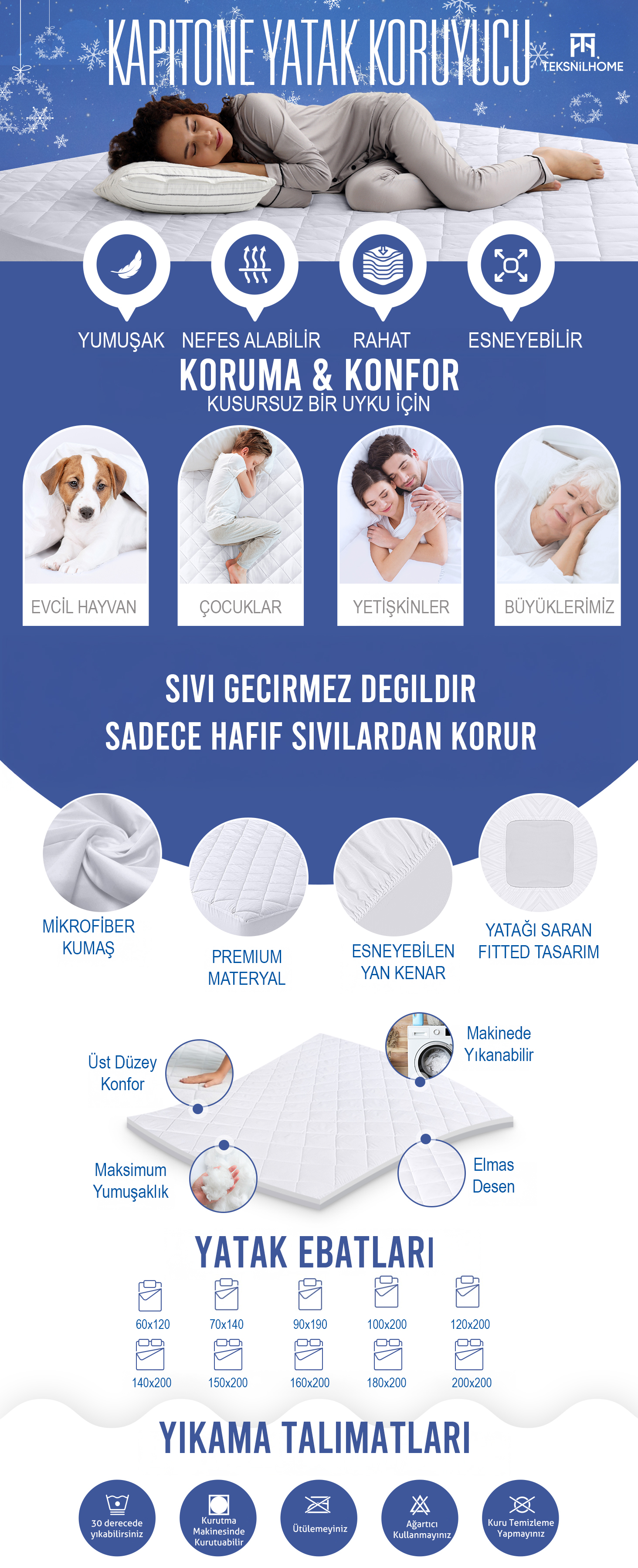 - %100 Mikrofiber üretilmiştir. TeksNil Home Kapitone Yatak Koruyucu Alez nefes alabilen, cilt dostu, rahat ve dayanıklıdır.