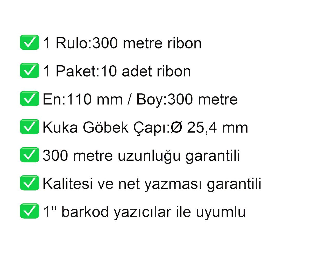 110x300 Metre Wax Ribonun özellikleri ve açıklamaları aşağıda verilmiştir. Farklı ölçü seçenekleri ve daha fazla bilgi için mağazamızı ziyaret edebilirsiniz.