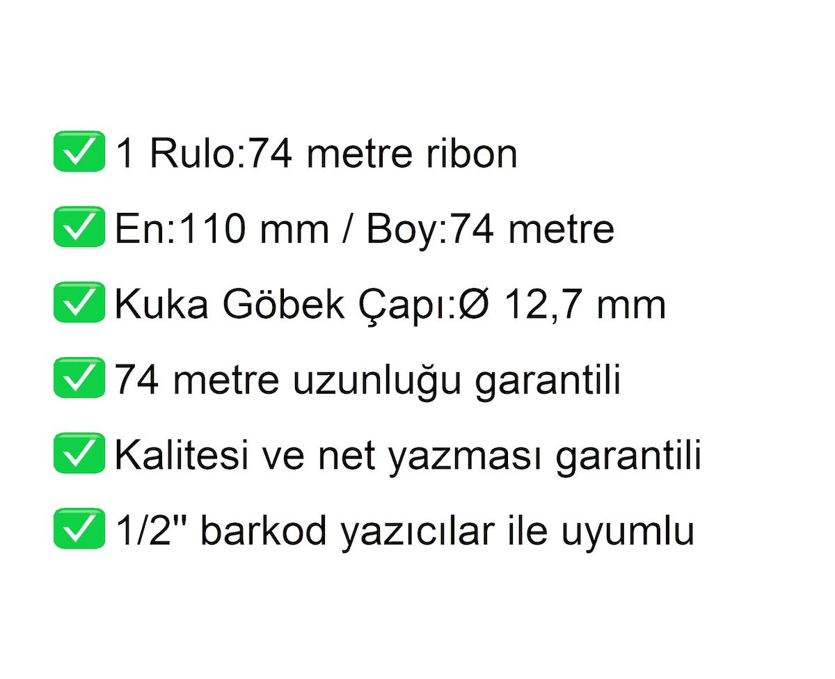 110x74 Metre Wax Ribonun özellikleri ve açıklamaları aşağıda verilmiştir. Farklı ölçü seçenekleri ve daha fazla bilgi için mağazamızı ziyaret edebilirsiniz.