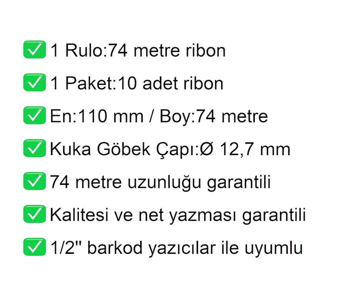 110x74 Metre Wax Ribonun özellikleri ve açıklamaları aşağıda verilmiştir. Farklı ölçü seçenekleri ve daha fazla bilgi için mağazamızı ziyaret edebilirsiniz.
