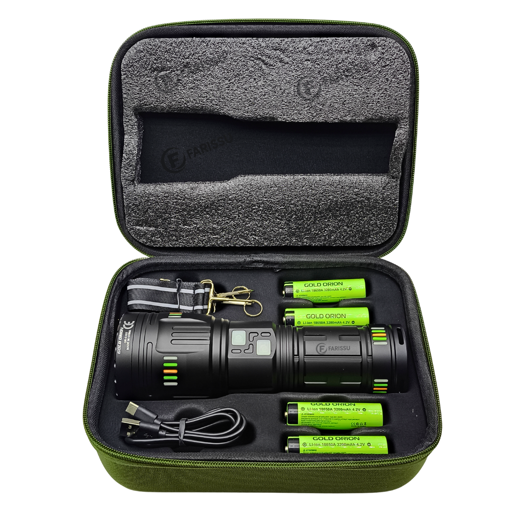 Gold Orion OR-G601, standart el fenerlerinin çok ötesinde, profesyonel kullanım için tasarlanmış ultra güçlü bir arama ve kamp feneridir. Yeni nesil 200W Lazer LED teknolojisi sayesinde ışığı dağıtmadan kilometrelerce uzağa (3000 metreye kadar) odaklayabilir.