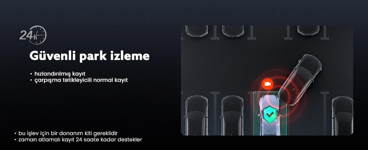 +360 Botslab Hk50 Set / 3k Qhd Wifi 150° Ultra Geniş Açı Gece Görüşlü Akıllı Araç Kamera + Park Kiti