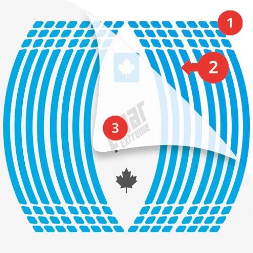 Jant şeridinin 3 katmanı vardır. 1 zemin, 2 Jant Şeridi, 3 transfer bandı. Transfer bandı ürünü istenilen yüzeye kolayca uygulamak için kullanılır.