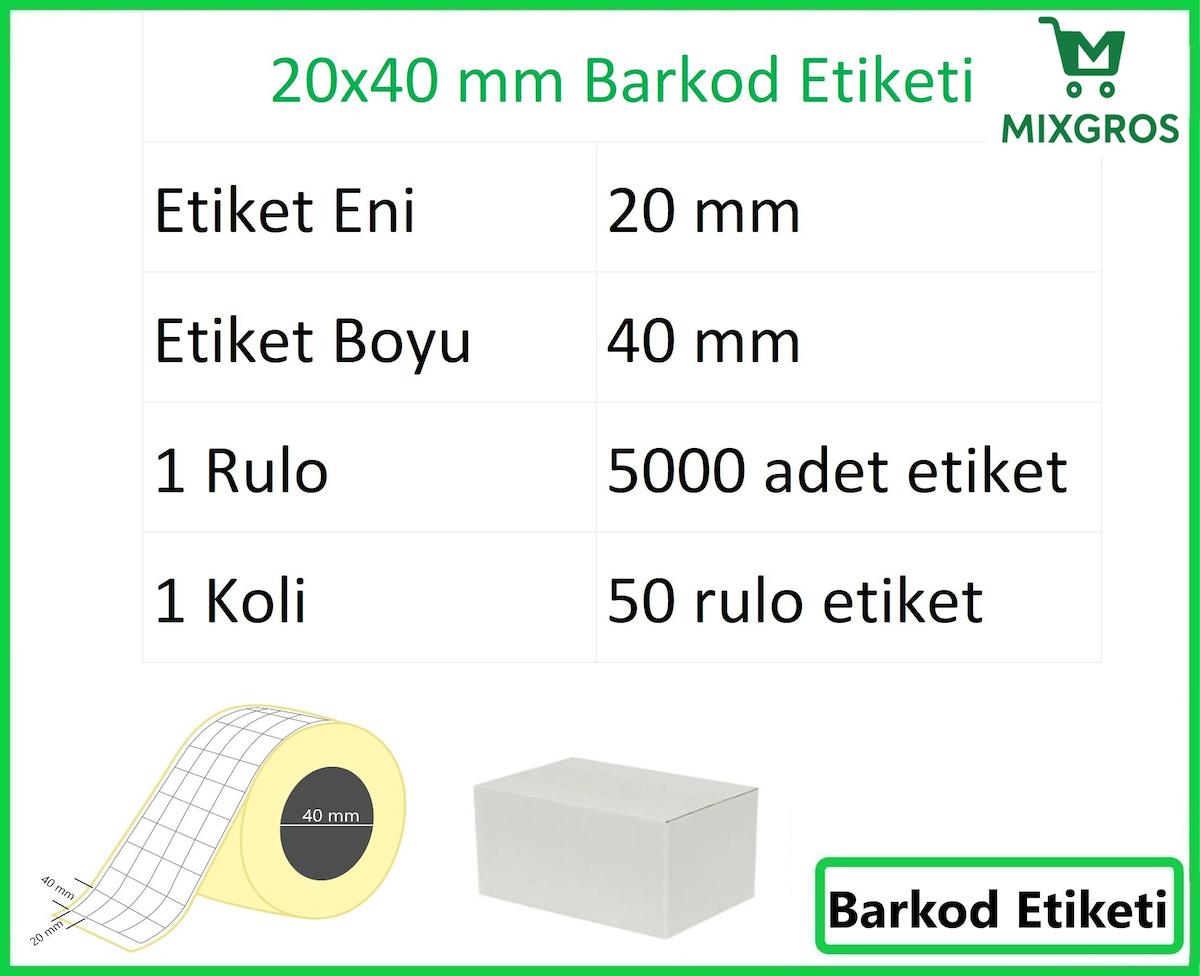 40x20 mm Termal ürün Barkod Etiketinin özellikleri ve açıklamaları aşağıda verilmiştir. Farklı ölçü seçenekleri ve daha fazla bilgi için mağazamızı ziyaret edebilirsiniz.