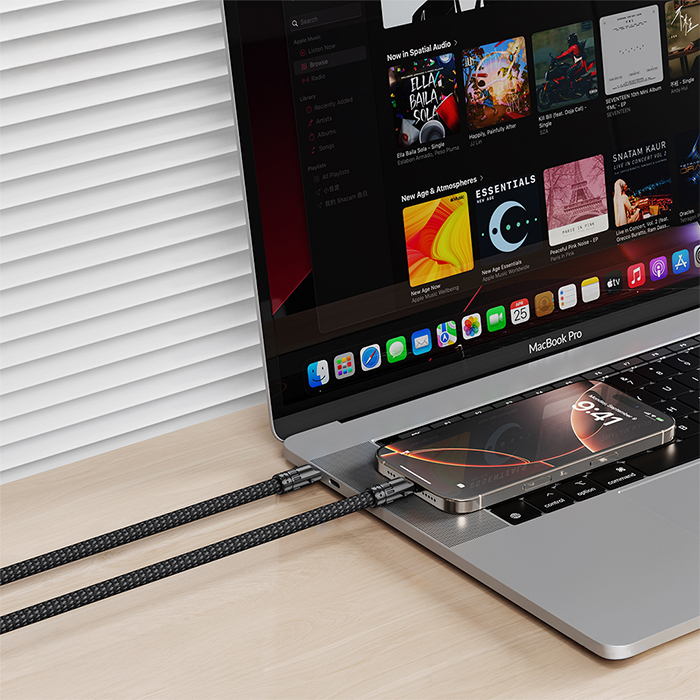 60W PD Hızlı Fast Destekli TYPE-C (USB-C) to TYPE-C Dayanıklı Data Şarj Kablosu Ve Telefon Askısı