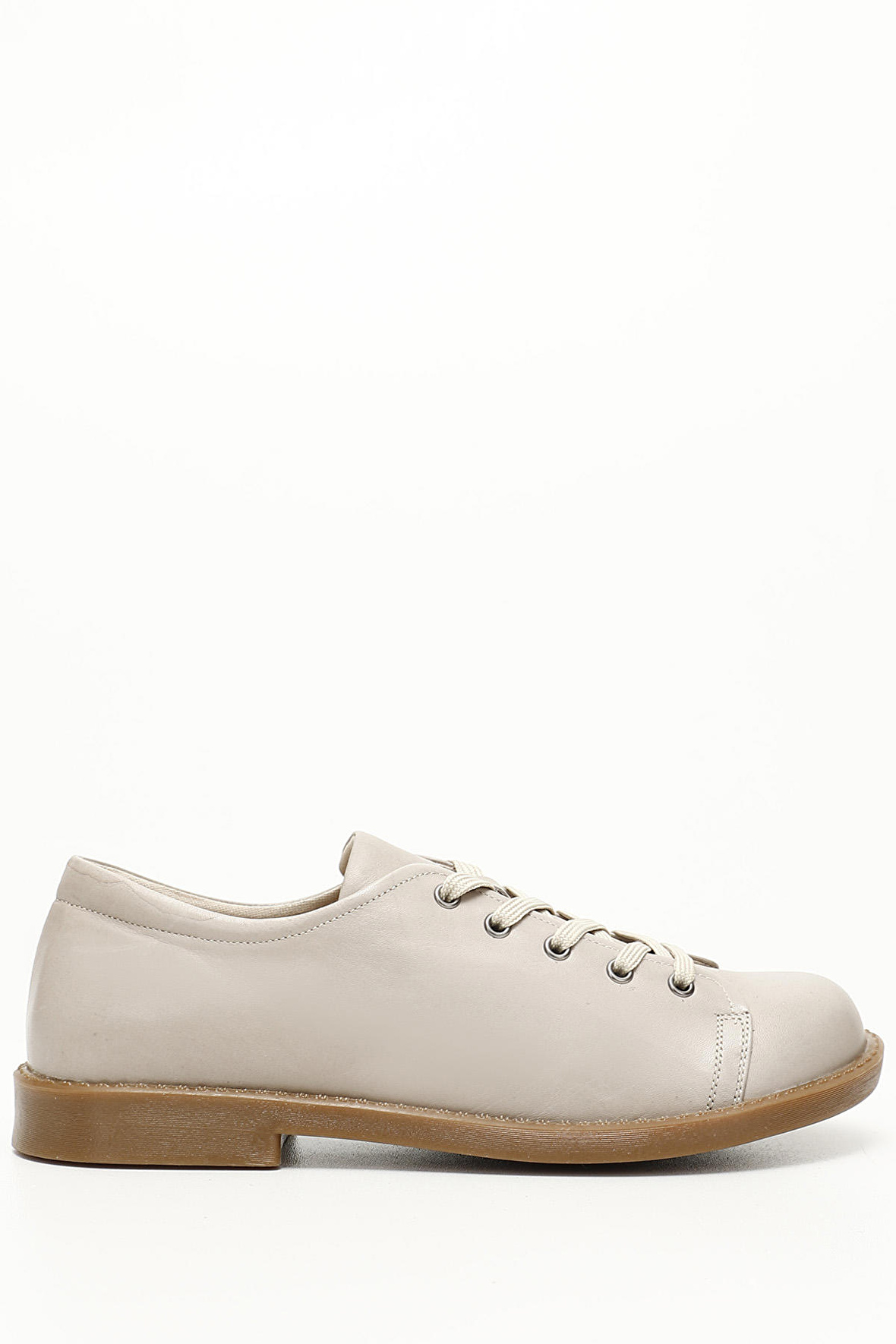 AÇIK GRİ Gön Hakiki Deri Yuvarlak Burun Kauçuk Taban Bağcıklı Kadın Günlük Ayakkabı 24242