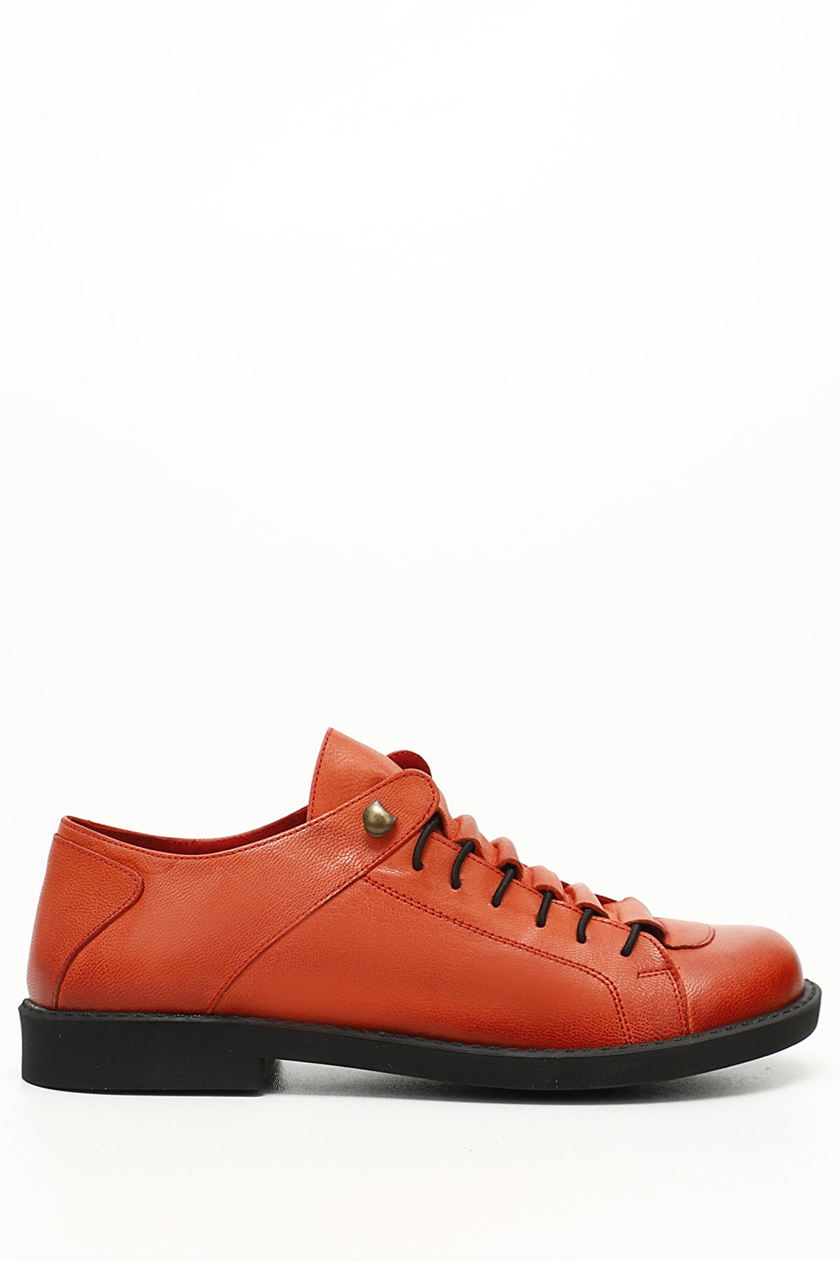 AÇIK KIRMIZI Gön Hakiki Deri Yuvarlak Burun Bağcıklı Kadın Ayakkabı 24228