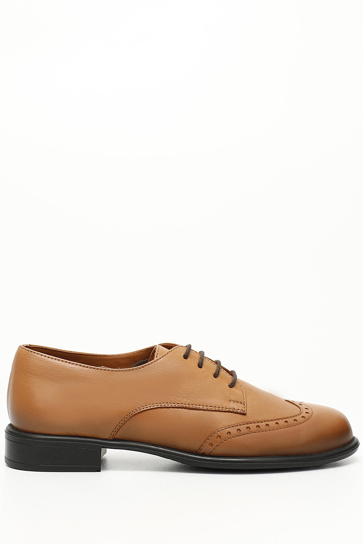 AÇIK TABA Gön Hakiki Deri Yuvarlak Bağcıklı Zımbalı Kadın Ayakkabı 24194