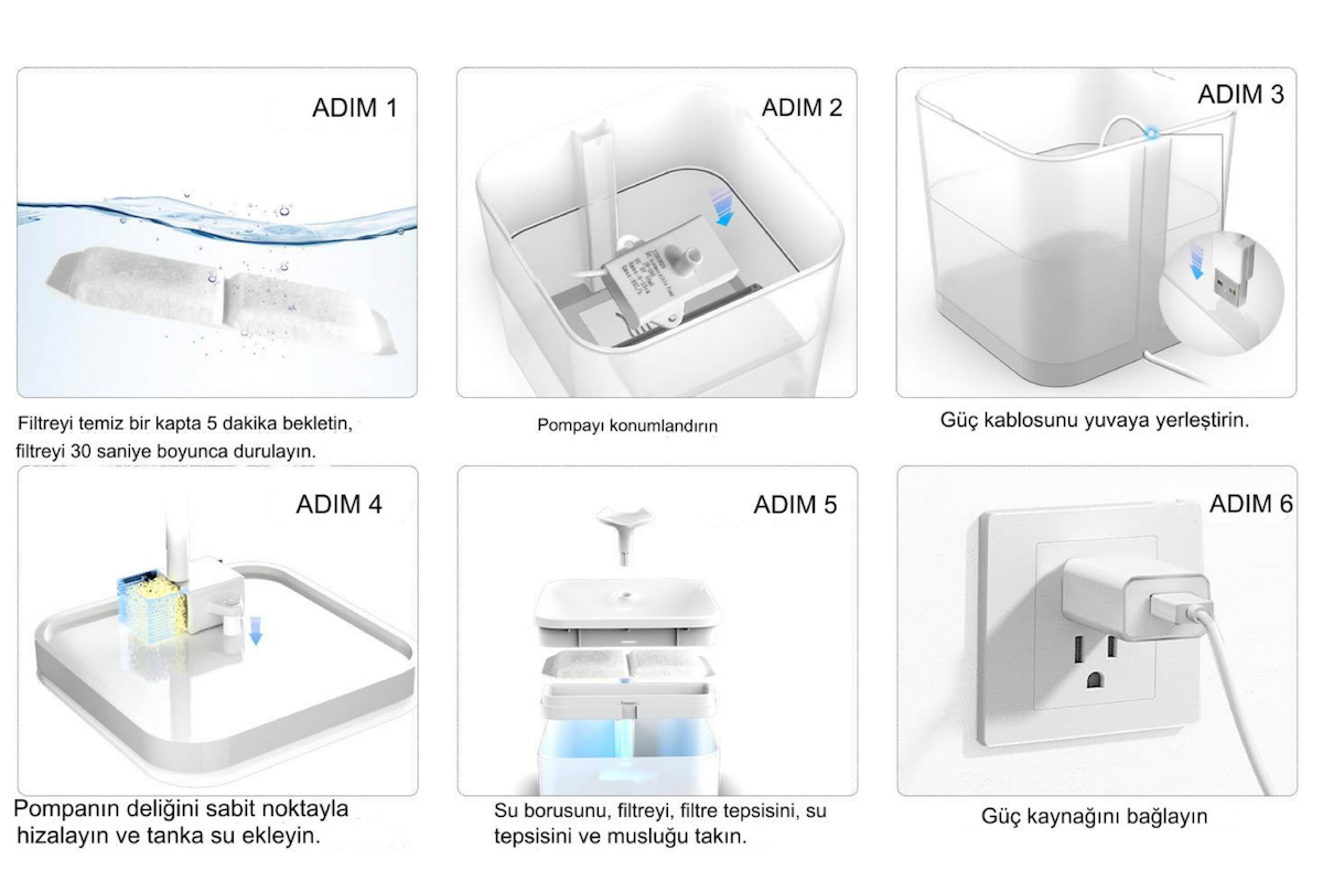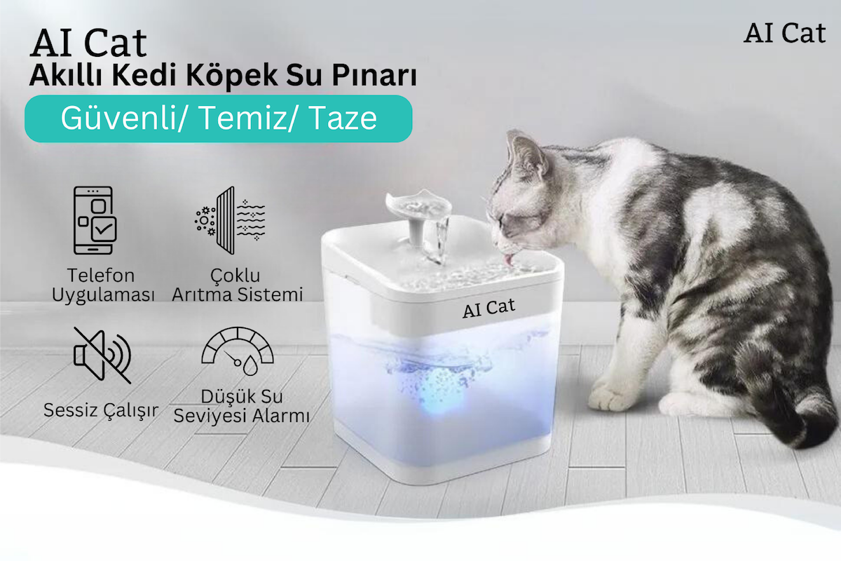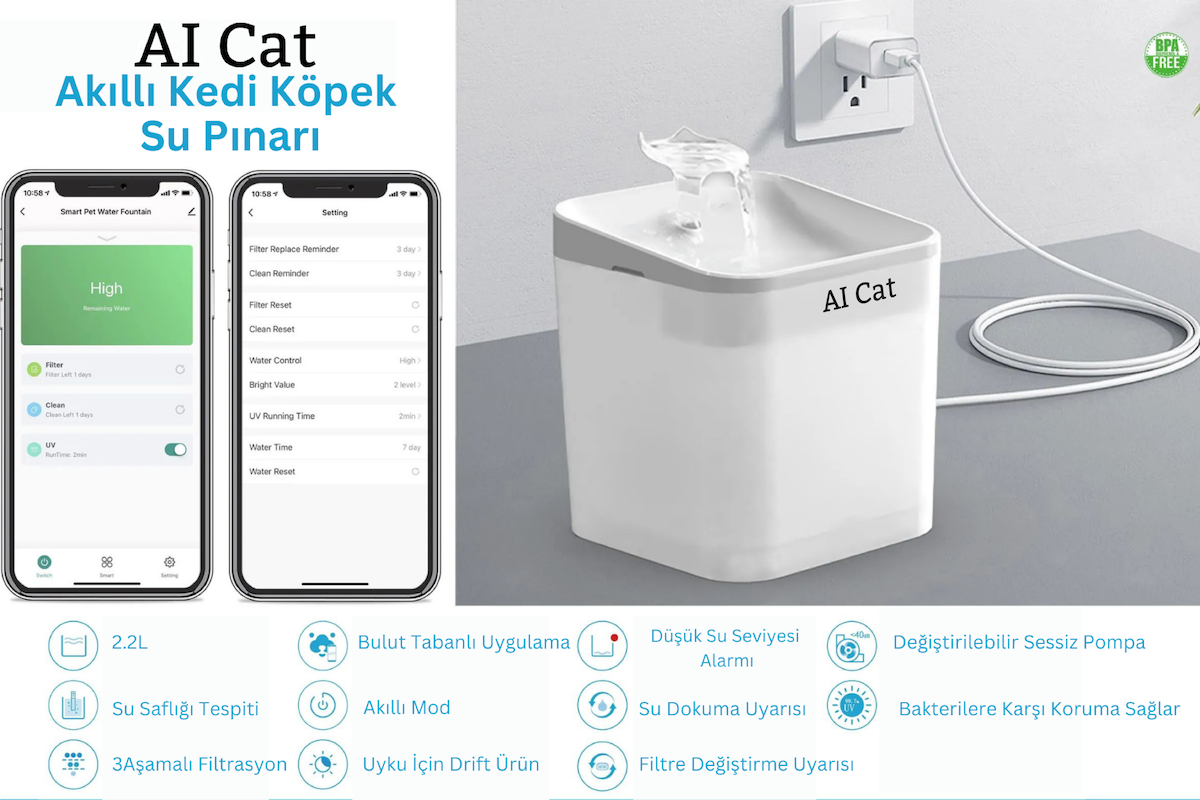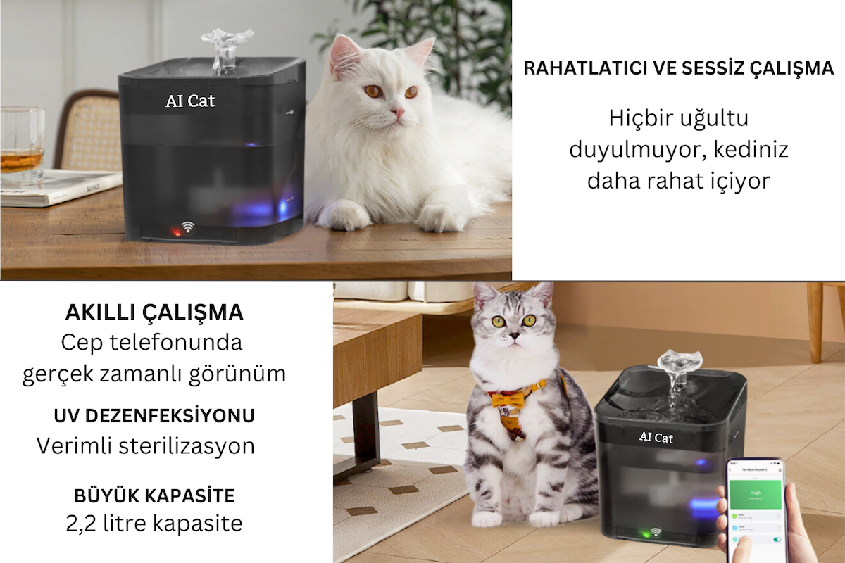 Akıllı Kedi Köpek Su Şelalesi Su Pınarı Su Sebili - Wifi Destekli - Uv - 2.2 Lt Otomatik Su kabı