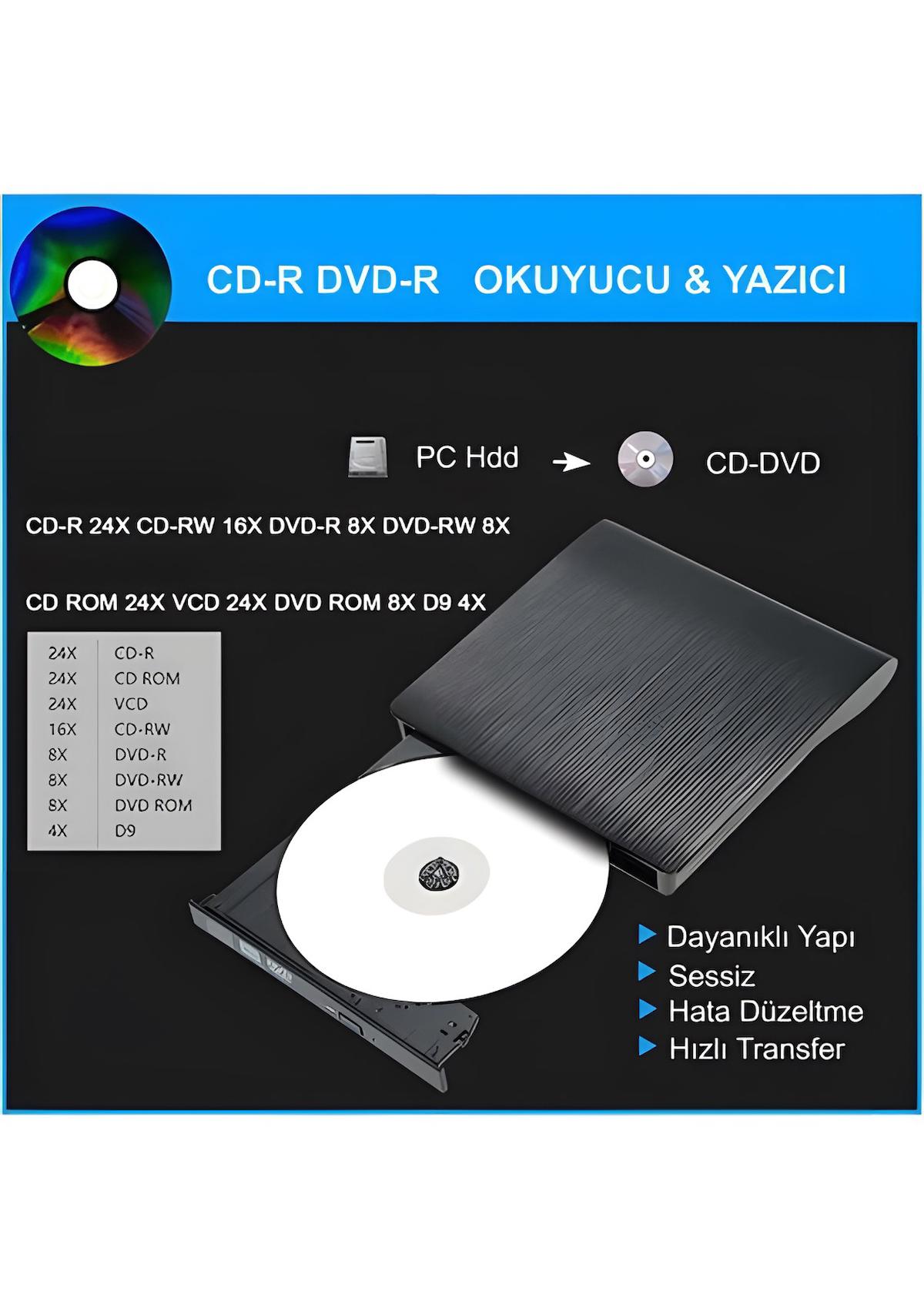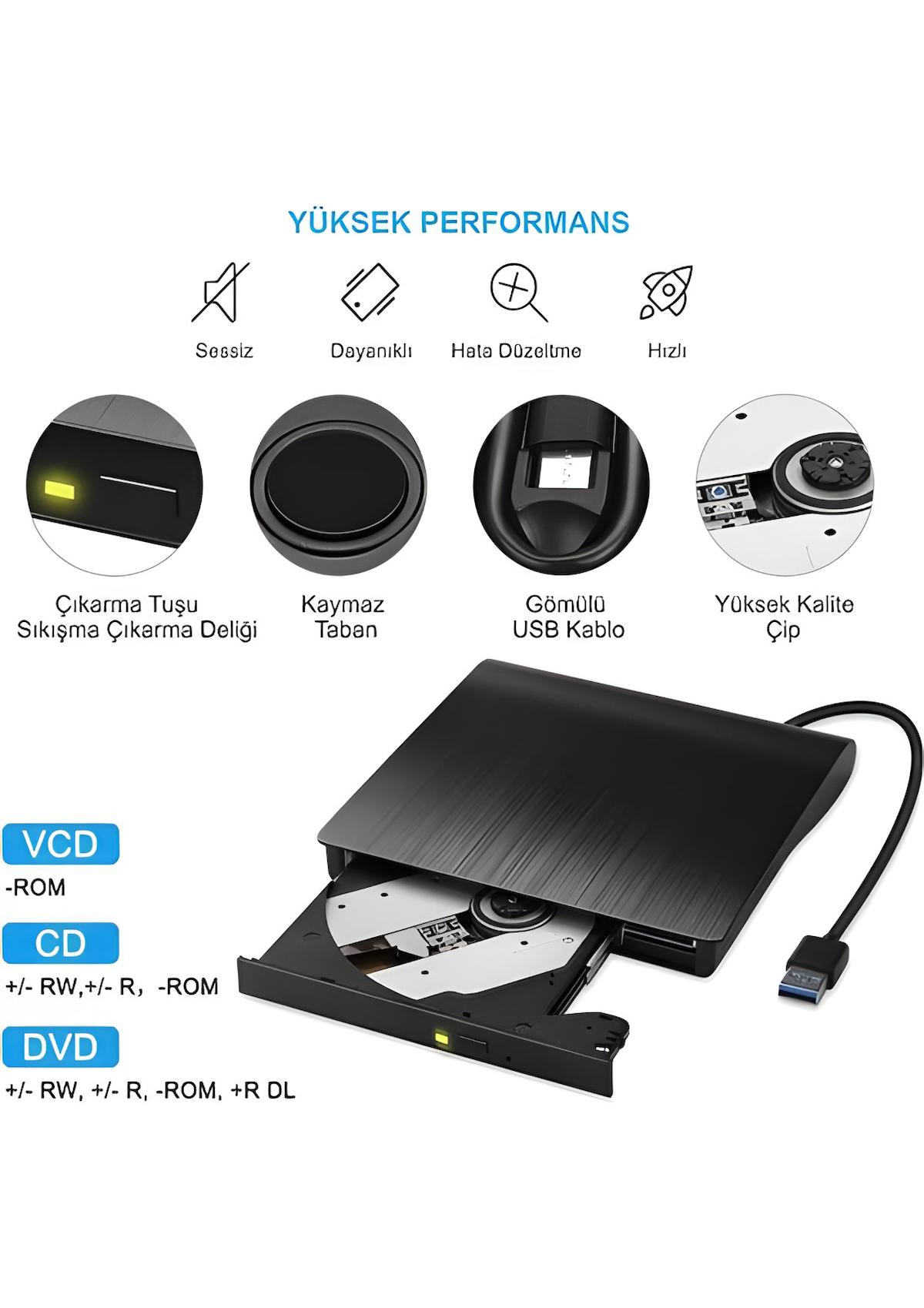 ÇOK FONKSİYONLU: Sadece bir okuyucu değil, aynı zamanda CD/DVD yazar / yeniden yazar / yazıcıdır. Bunu film DVD'lerinizi oynatmak, müzik CD'lerinin keyfini çıkarmak, diskleri yazmak/kopyalamak, yazılım/sistem yüklemek, oyun indirmek ve daha fazlası için kullanabilirsiniz. CD-R, CD-ROM, CD+/-RW, DVD-ROM, DVD-R, DVD+/-RW, DVD-R DL, VCD ROM disklerini destekler. Maksimum 8x DVDR Yazma Hızı ve Maksimum 24x CD Yazma Hızı, yüksek yazma ve okuma hızı sağlar.