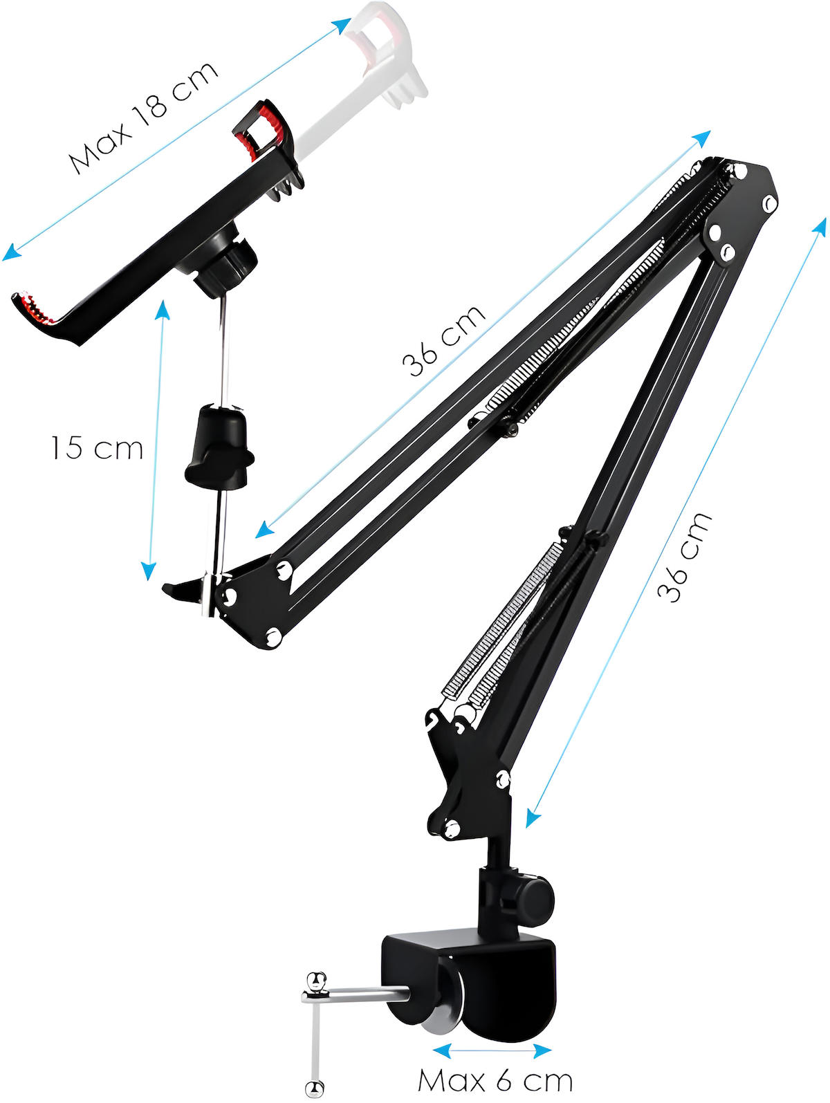 ✔➥ Evrensel uyumlu: Bu Tablet standı, uzunluğu 4,5 inç ila 10,6 inç arasındaki tüm akıllı telefonlar ve tabletler için uygundur. bu mobil standın Tutucu boyutu: 12-18 cm ve Kelepçe boyutu: 0-5,5 cm kalınlığında masa kenarları vardır.