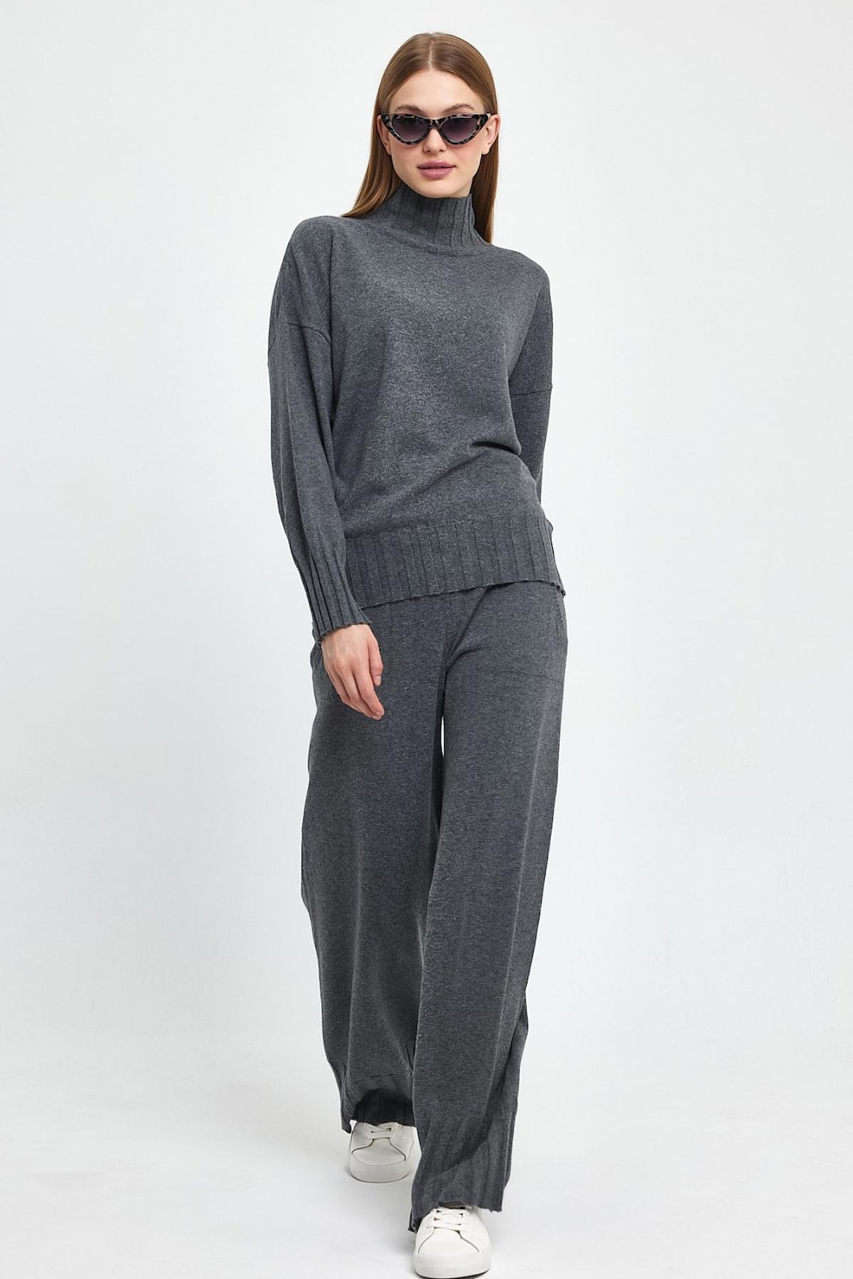 Antrasit Yarım Balıkçı Triko Kazak