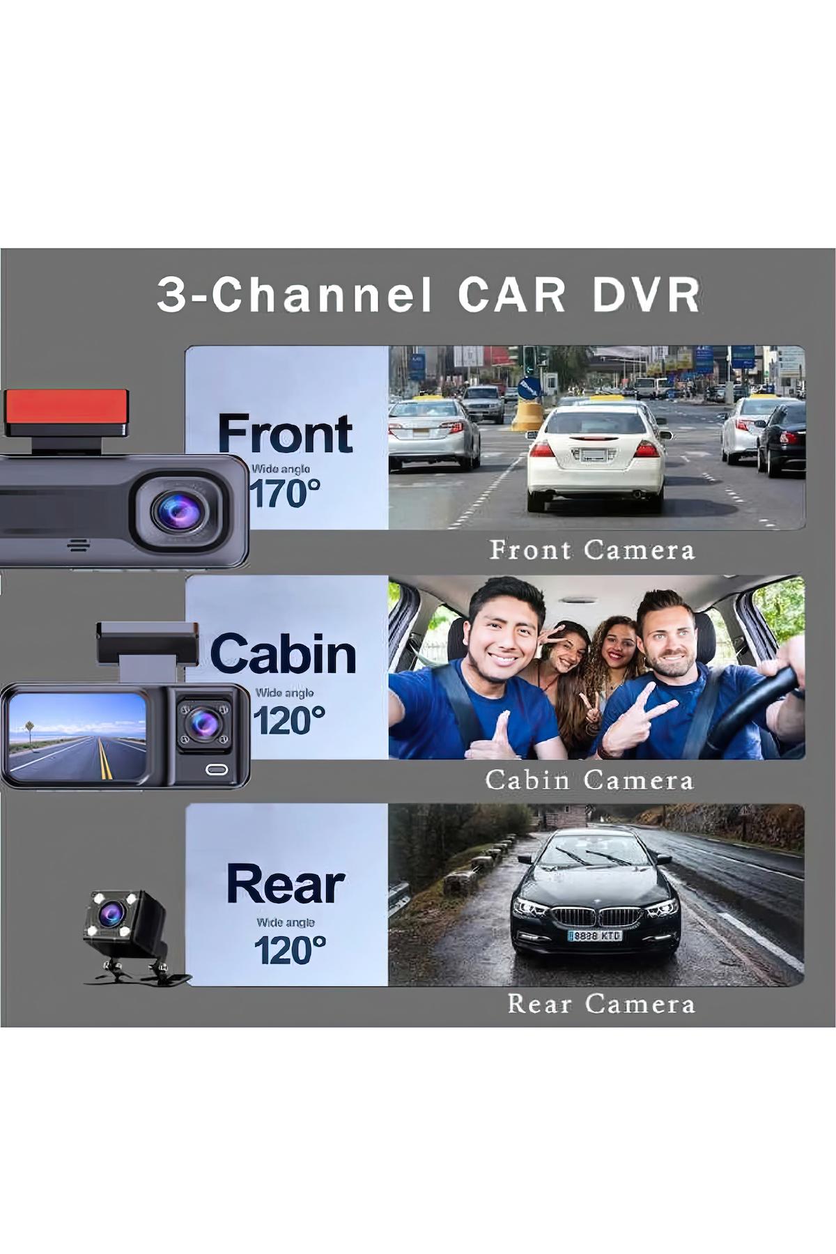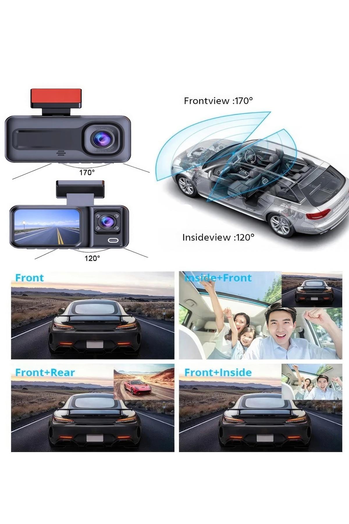• 3 KAMERALI (ÖN:1080P/ İÇ :480P/ ARKA: 480P)