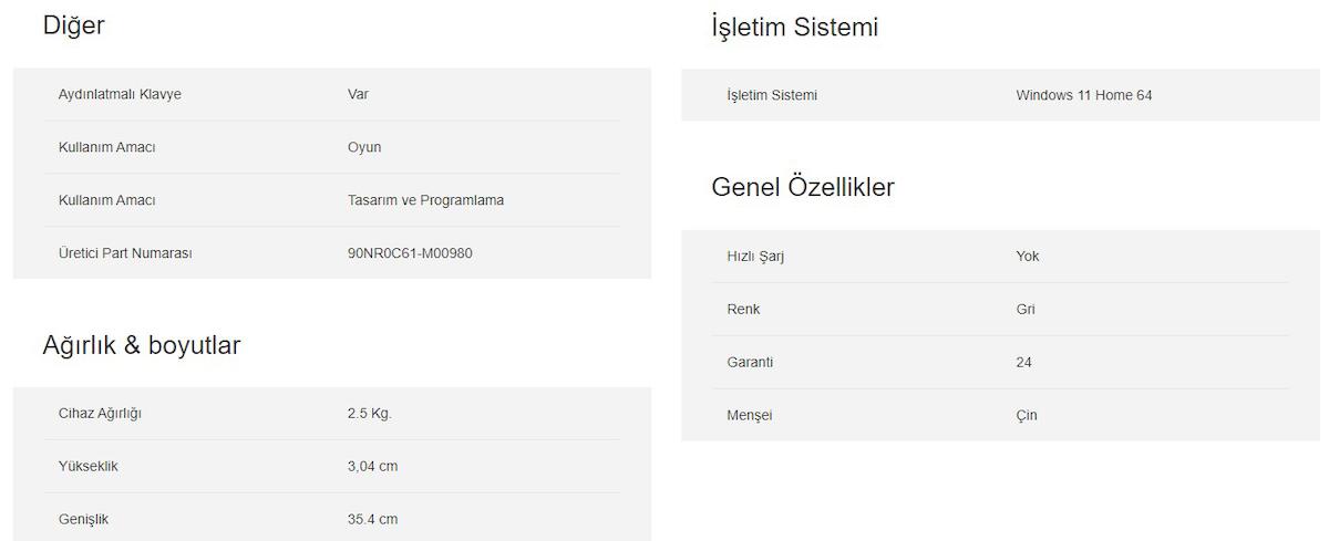 Ürün Türü Gaming Notebook