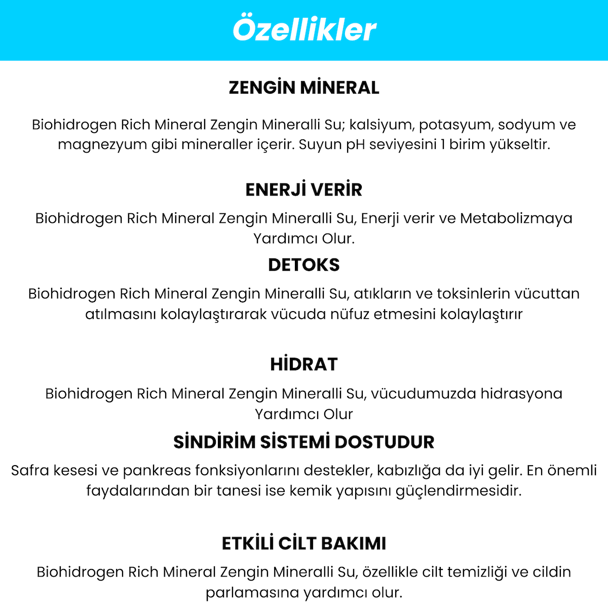 Sağlık: Mineralleştirilmiş su içmek, vücuda gerekli minerallerin alınmasına yardımcı olabilir. Ayrıca, temiz su içmek sağlık için temel bir gerekliliktir.