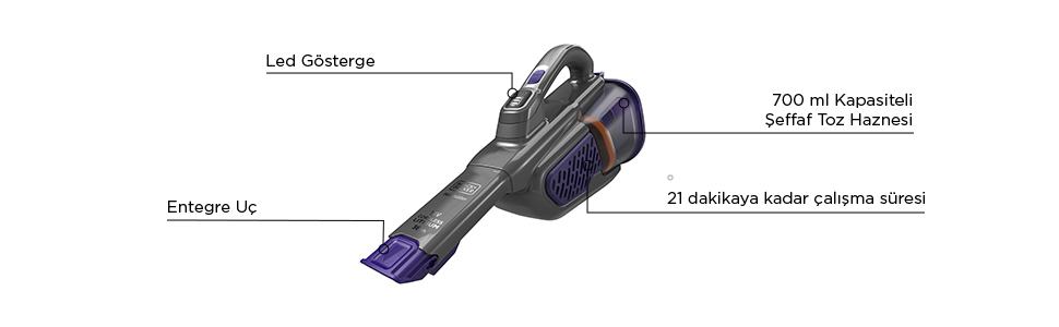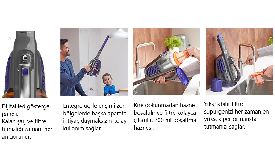 Black+Decker BHHV520BFP 18V Şarjlı Standard Girişli Pet Başlıklı El Süpürgesi