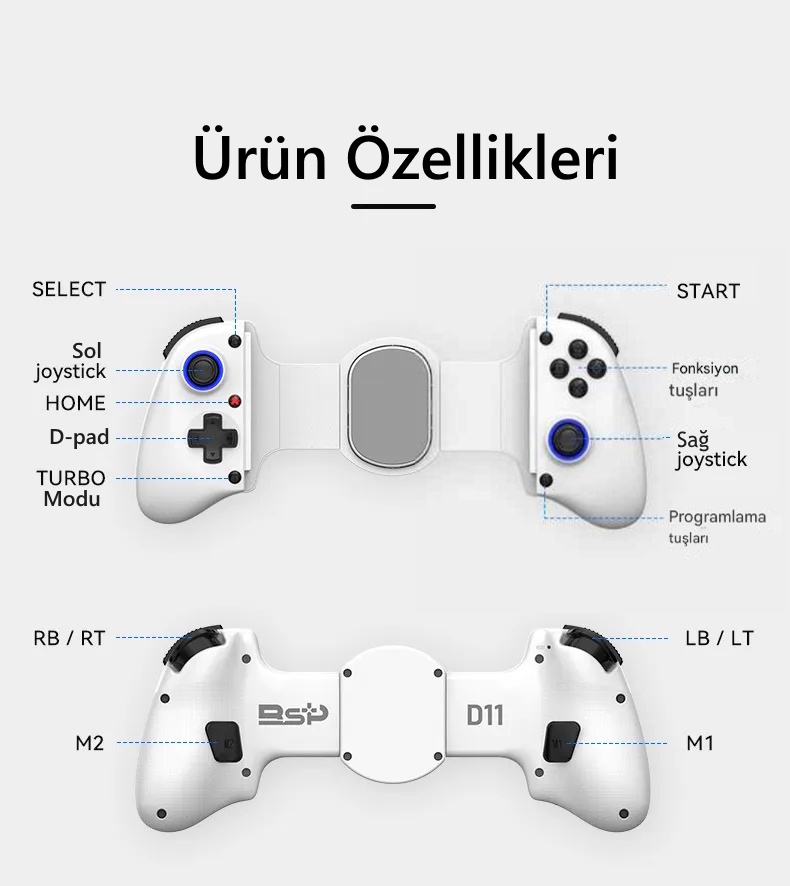 BSP-D11 IOS/Android Tablet ve Telefon Uyumlu Telefon Tutucu Joystick Gamepad