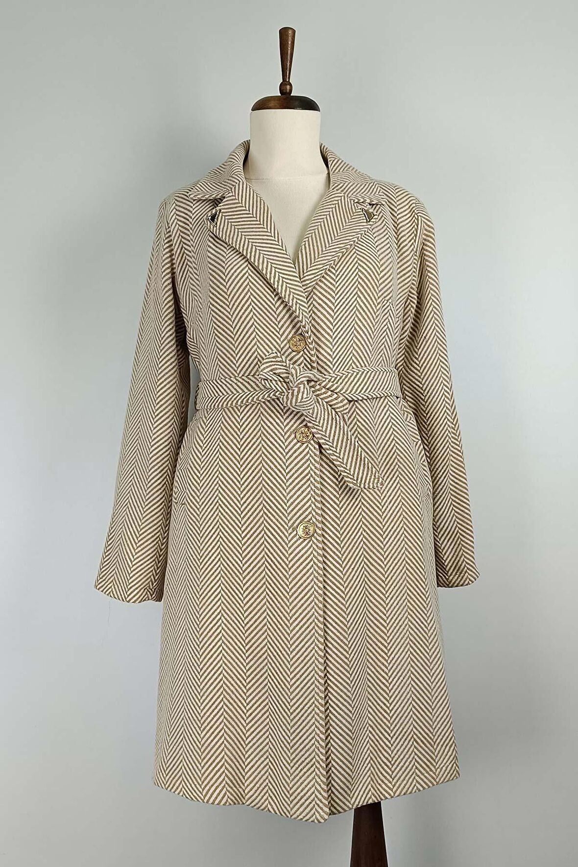 Büyük Beden Balık Sırtı Kaşe Kaban Bej K332
