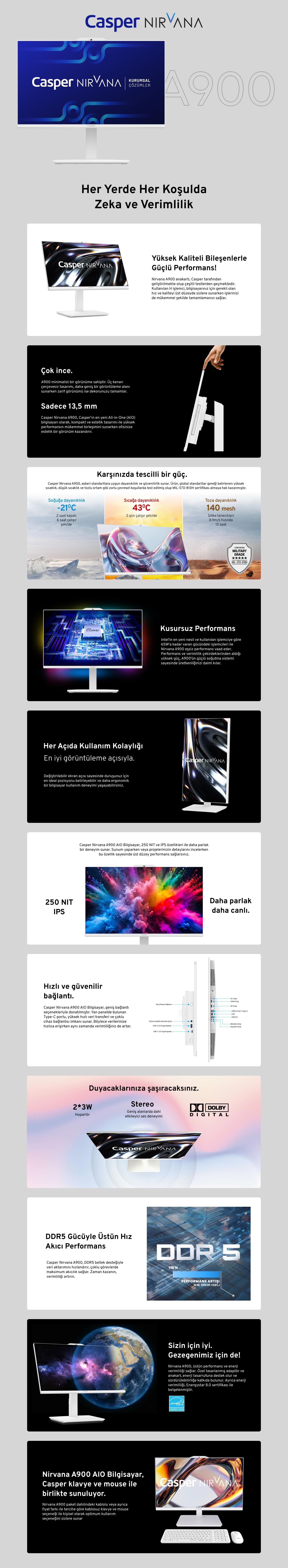 Casper Nirvana A90.1342-BV00X-V-B-K Intel Core i5-13420H 16GB RAM 500GB NVME SSD Freedos Monitör PC (All-in-One)