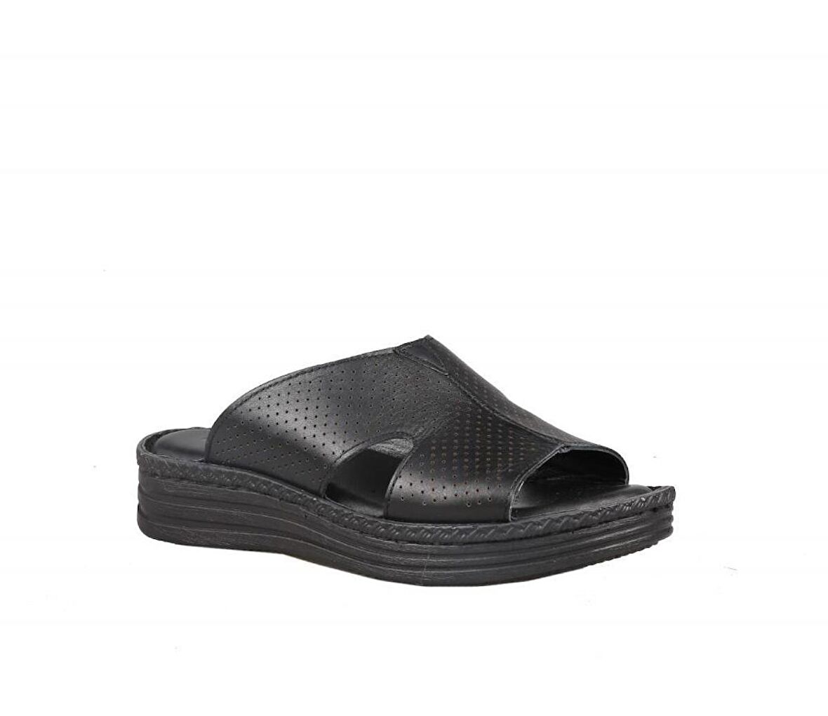 CASTLE BLACK 22341 Hakiki Deri Ortopedik Siyah Kadın Terlik