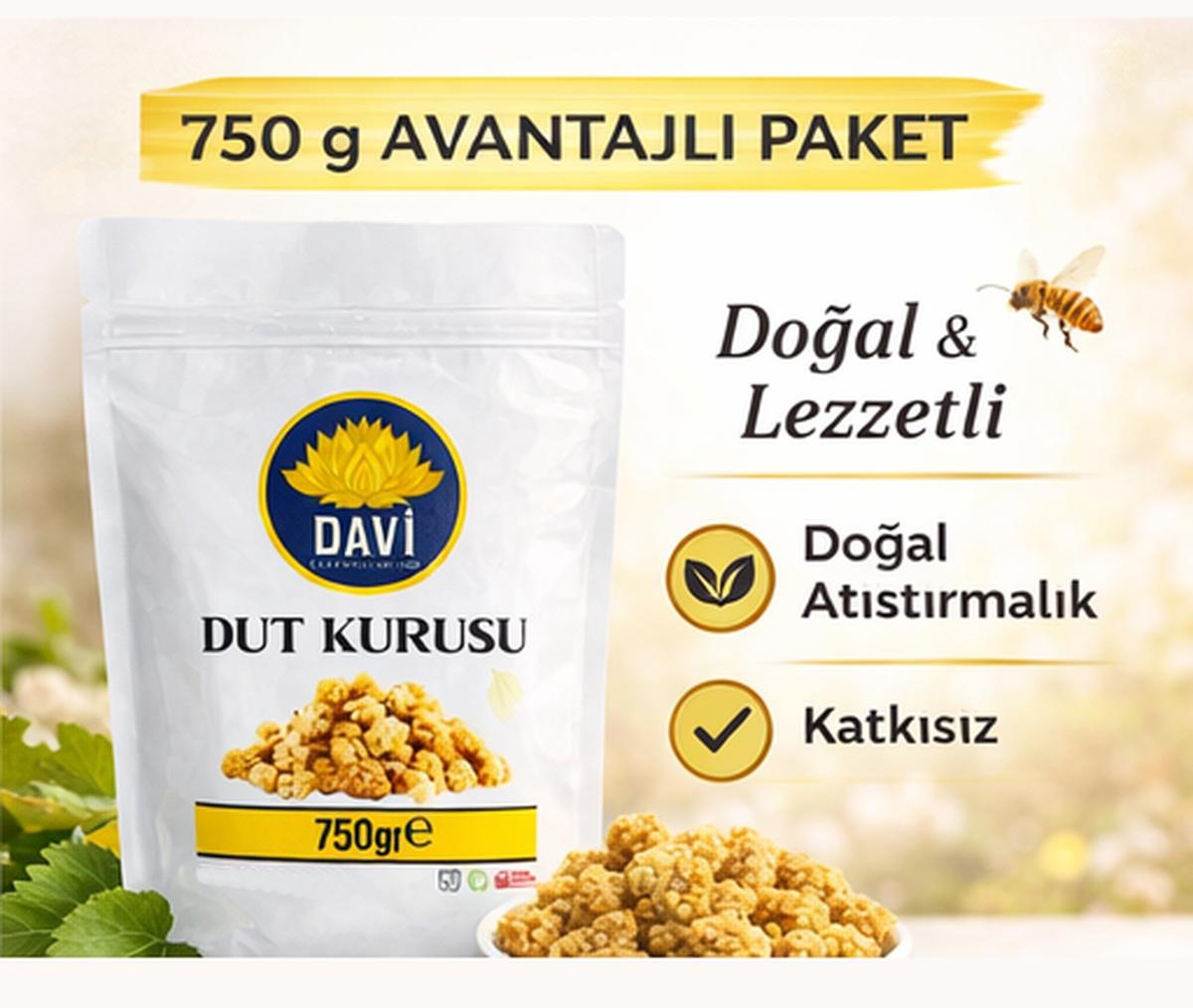 Dut Kurusu : Hasat mevsiminde toplanan dut meyveleri güneşte kurutularak elde edilmektedir. Katkı veya koruyucu içermemektedir. ; Kuru dut yüksek oranda Lif içerir. Doğal şeker kaynağıdır. ; Bir avuç kuru dut ( yaklaşık 25 gr ) 2.23 gram Lif içerir. ; İçeriğinde lif ve şekerin yanı sıra Demir, Kalsiyum, Fosfor, Magnezyum, Potasyum, Çinko, Selenyum gibi mineraller bulunur. ; Dut Kurusunun Kullanım Alanları ; ; Sağlıklı atıştırmalık ve diyet ara ürün olarak tüketilebilir. Müsli, tahıl gevreği ve kahvaltılık ürünlerin karışımında kullanılabilir. Tatlı, puding, çikolata, pasta, bisküvi ve kek yapımında kullanılabilir. ; Bingöl -Sivan yöresine ait coğrafi işaretli beyaz inci dut kurusudur. İşlem Görmemiştir.