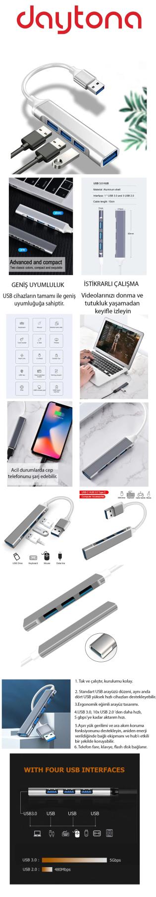 Daytona 809-AA Macbook Uyumlu USB To 4* USB 3.0 Splitter 5 Gbps Çevirici Hub Adaptör