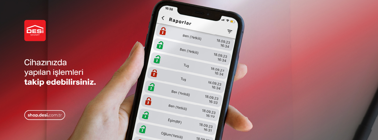Kilit açma/kapama hareketlerini tarih-saat ve hangi kullanıcı tarafından işlemin gerçekleştiğini görebilirsiniz.