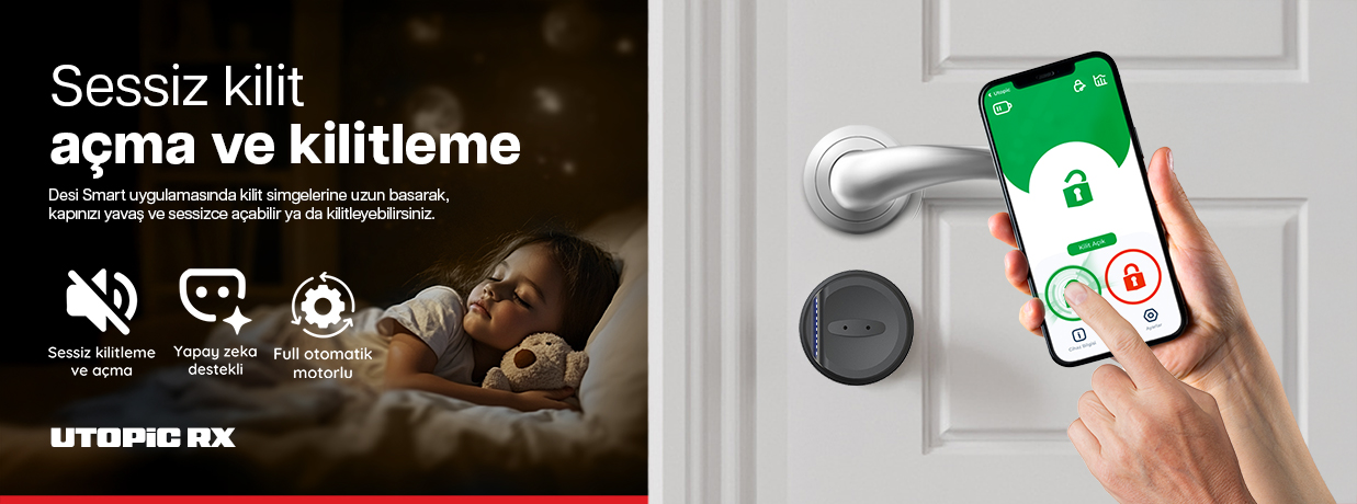 Haricen satılan DESi Akıllı Köprü sayesinde Utopic RXe akıllı kilidinizi internet aracılığı kontrol edebilirsiniz. Kilidinizi açabilir-kilitleyebilir, tüm ayarlara erişebilir, detaylı giriş-çıkış işlemlerini görebilirsiniz. Misafirlerinize tek veya belirli süreli kodlar oluşturabilir, oluşturulan bu kodları dilediğiniz silebilirsiniz.