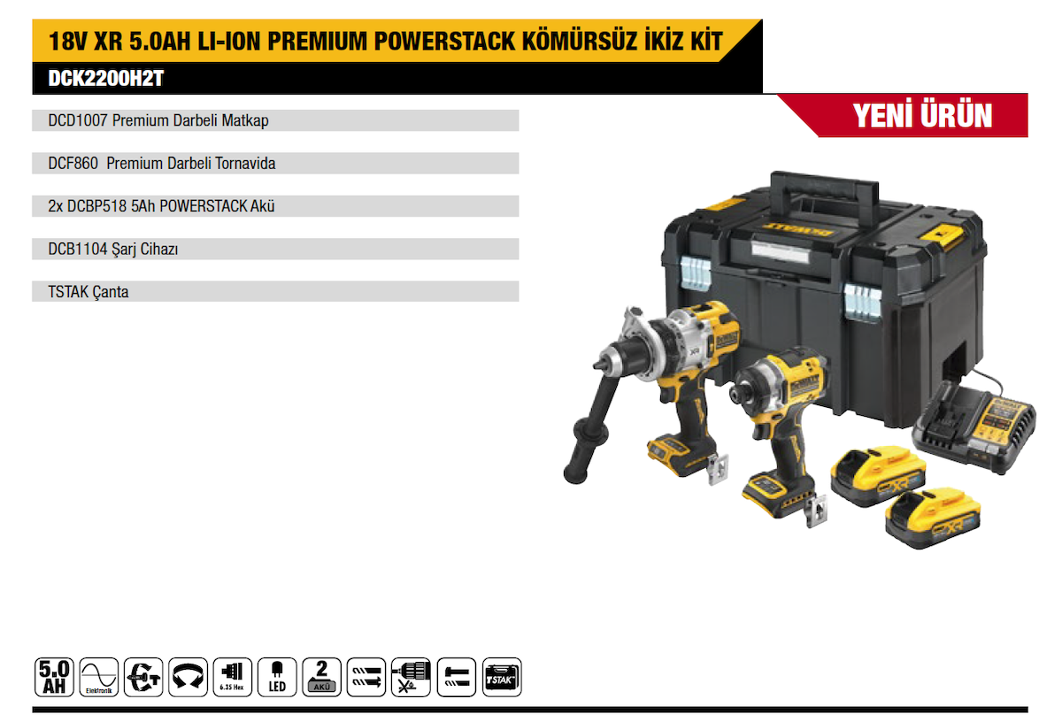 Dewalt DCK2200H2T 18V 2X5.0 Ah Akülü 2'li Set