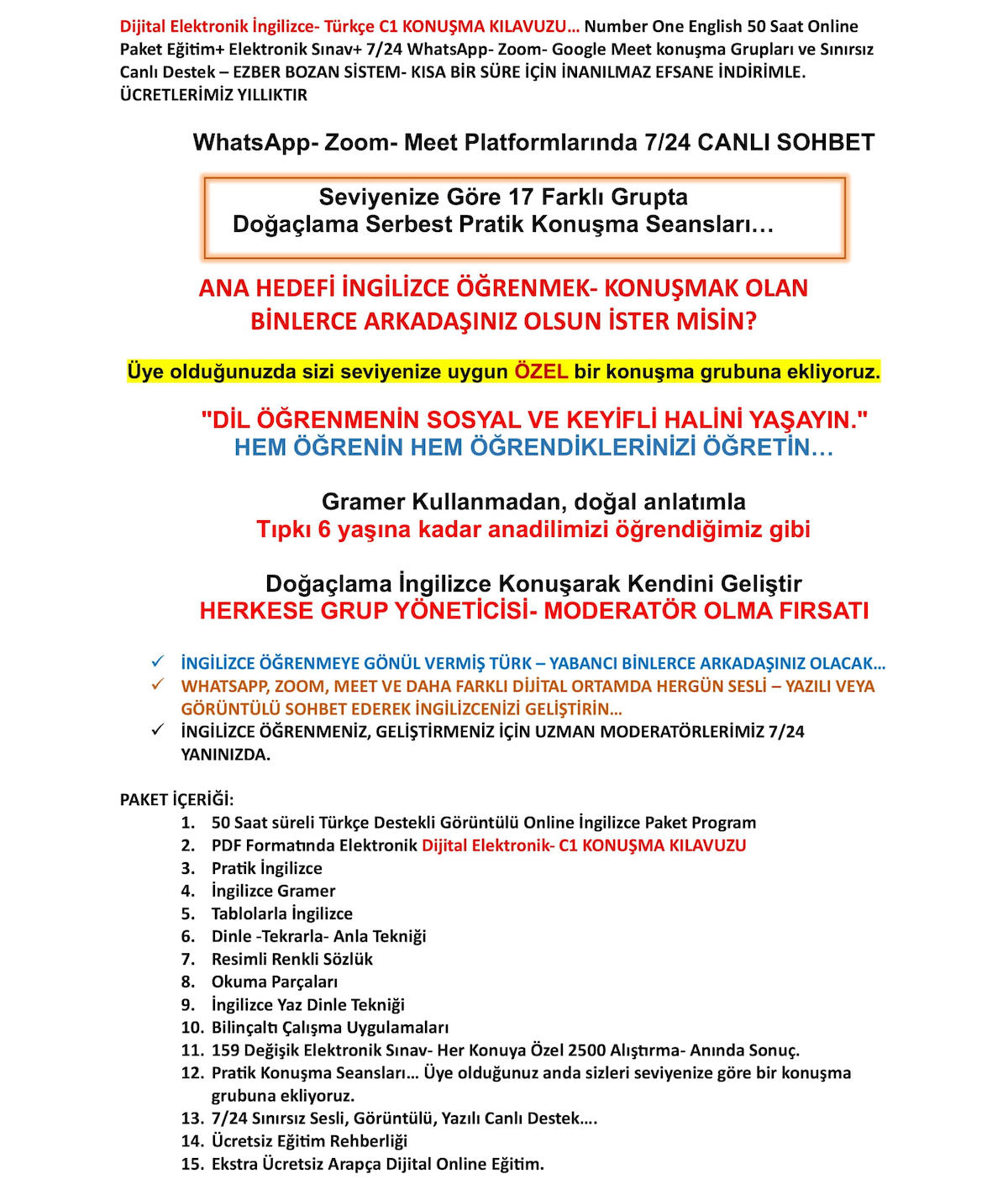 Dijital Elektronik -C1 KONUŞMA KILAVUZU Hediyeli … Number One English 50 Saat Online Paket Eğitim+ Elektronik Sınav+ 7/24 WhatsApp- Zoom- Google Meet konuşma Grupları ve Canlı Destek – EZBER BOZAN SİSTEM- EFSANE İNDİRİMLE YILLIK 99-TL