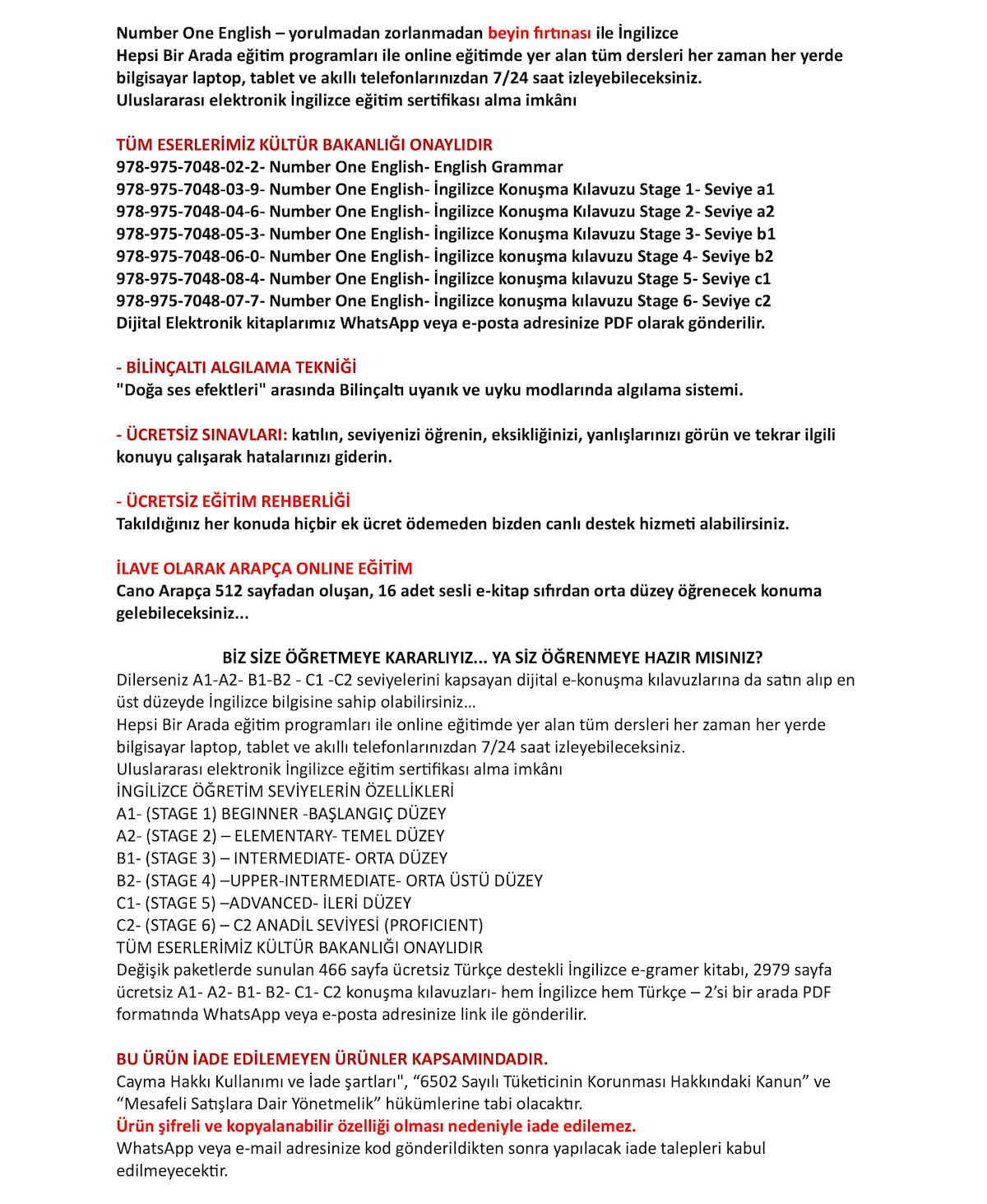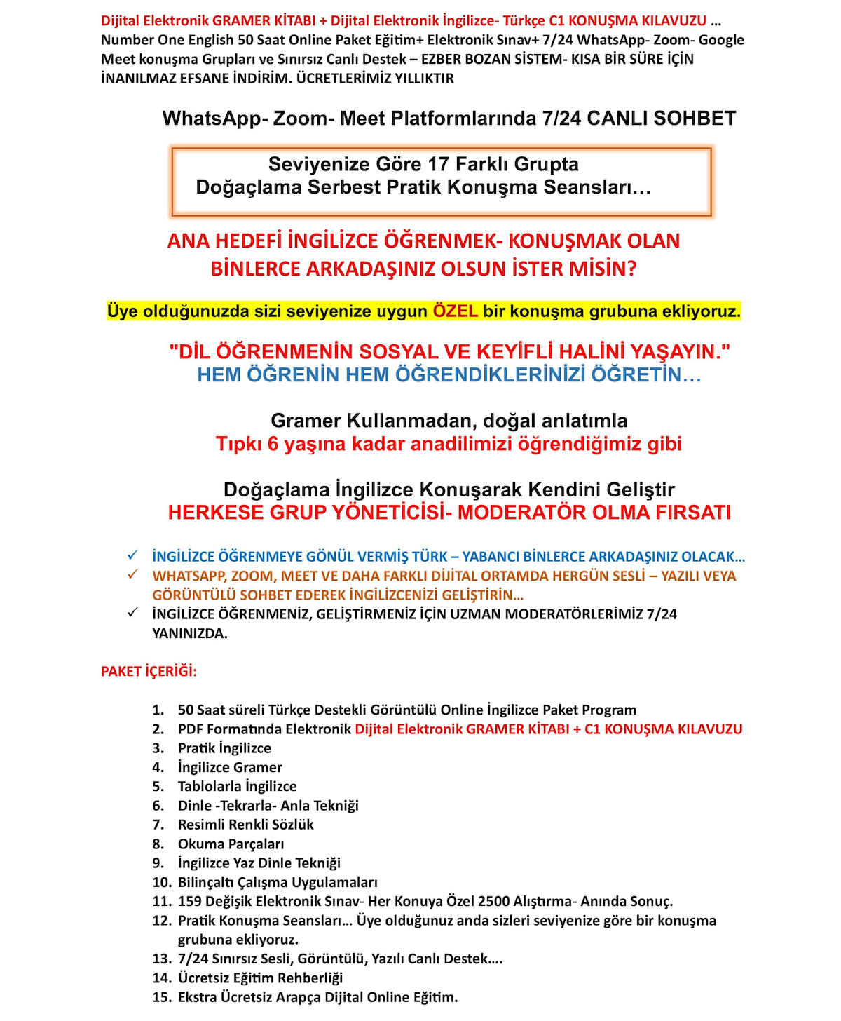 Dijital Elektronik GRAMER KİTABI+C1 KONUŞMA KILAVUZU … Number One English 50 Saat Online Paket Eğitim+ Elektronik Sınav+ 7/24 WhatsApp- Zoom- Google Meet konuşma Grupları ve Canlı Destek – EZBER BOZAN SİSTEM- EFSANE İNDİRİM... FİYATLARIMIZ 1 YILLIKTI