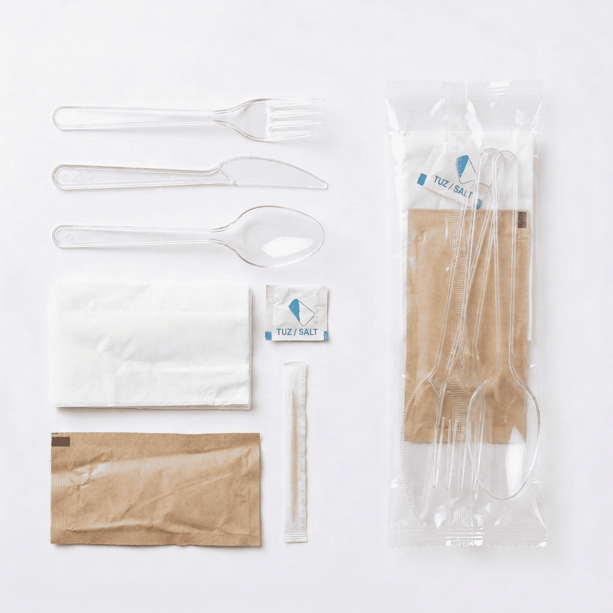 15 Adet Plastik Lüks 7’li Çatal Kaşık Bıçak Seti, günlük kullanım ve özel etkinlikler için ideal bir settir. Her paket, bir adet lüx çatal, bıçak ve kaşık, peçete, kürdan, mini tuz ve hijyenik ıslak mendil içerir. Hafif yapısı (3.4 gr) ile taşınması kolaydır. Kaliteli ve sağlam üretimi sayesinde uzun süreli kullanım sağlar. Piknik, ofis, yolculuk ve etkinliklerde pratik çözümler sunar. Geri dönüşüme uygundur.