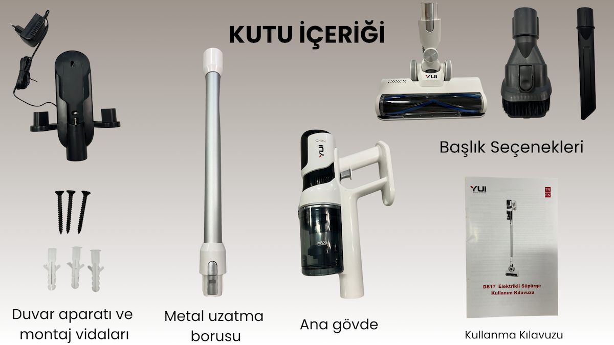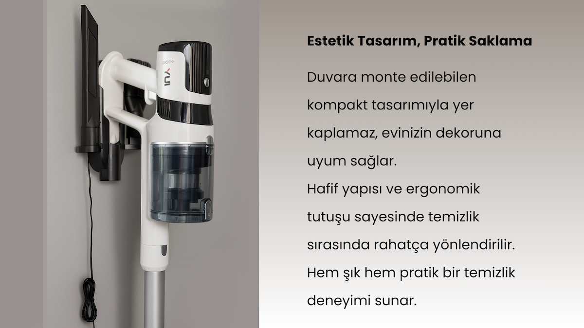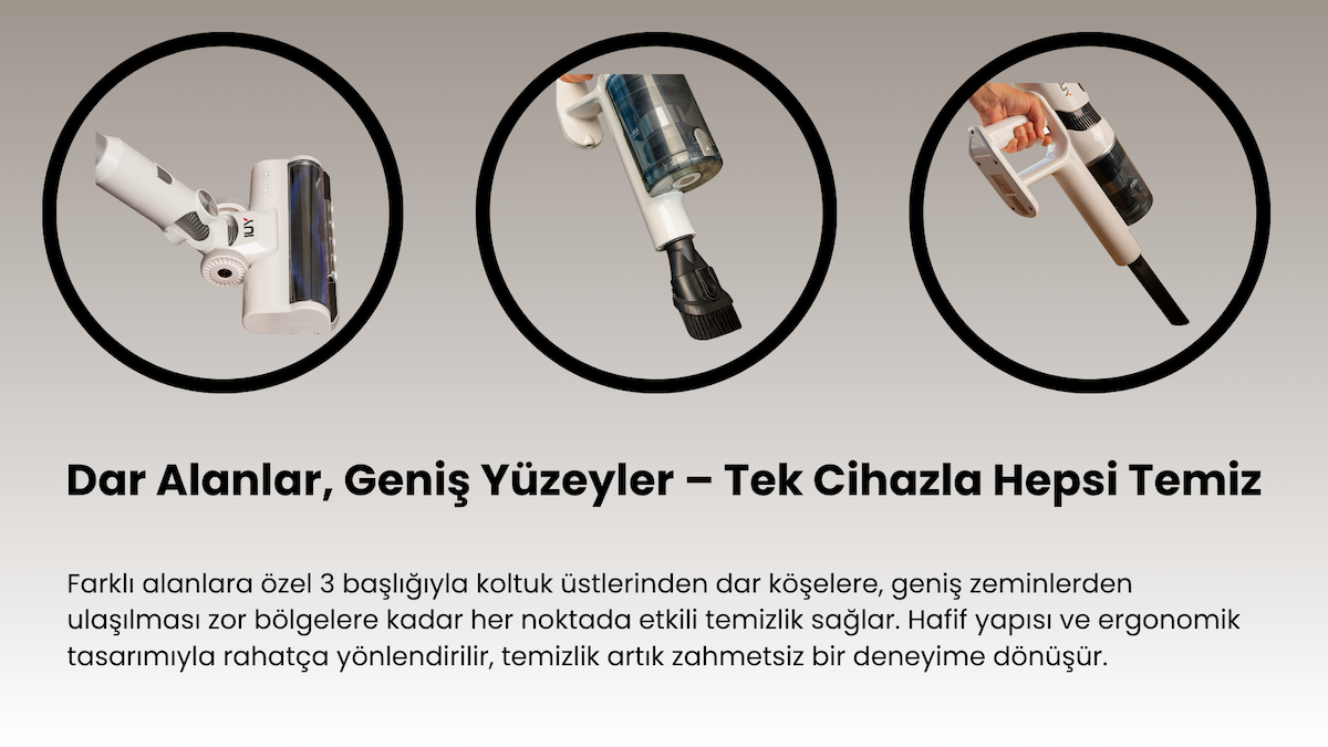 DS17 Şarjlı Dikey Süpürge HEPA Filtre 3 Kademeli Hız Ayarı