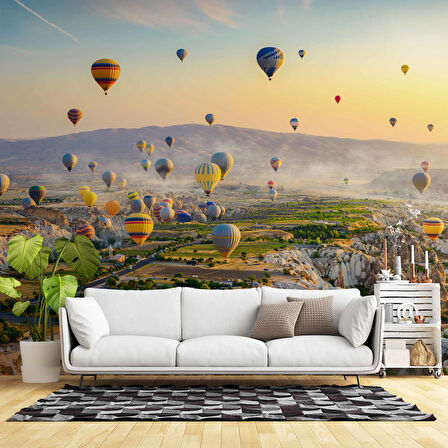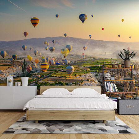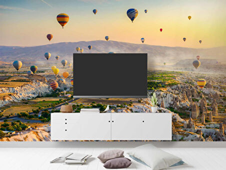 Kapadokya Renkli Sıcak Hava Manzaralı Duvar Kağıdı Baskı