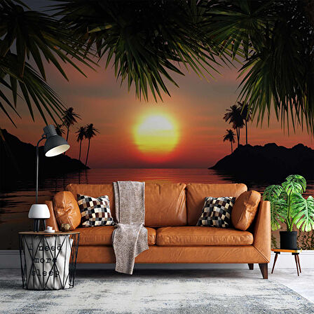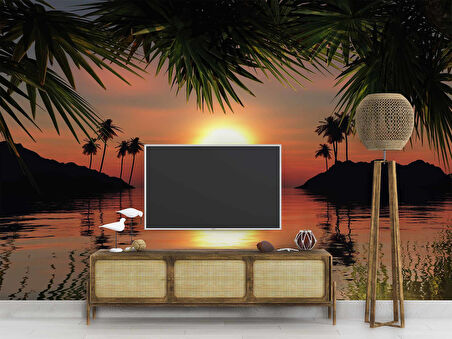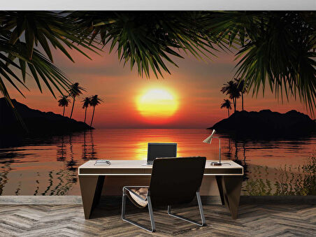 Palmiye Deniz Manzaralı Duvar Kağıdı Baskı