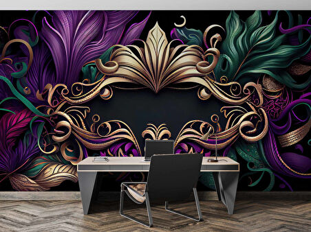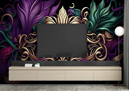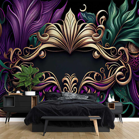 3 Boyutlu Mor Yeşil Altın Desenli Duvar Kağıdı