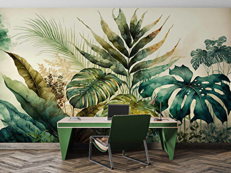 Botanik Bahçesi Çizim Desenli Duvar Kağıdı