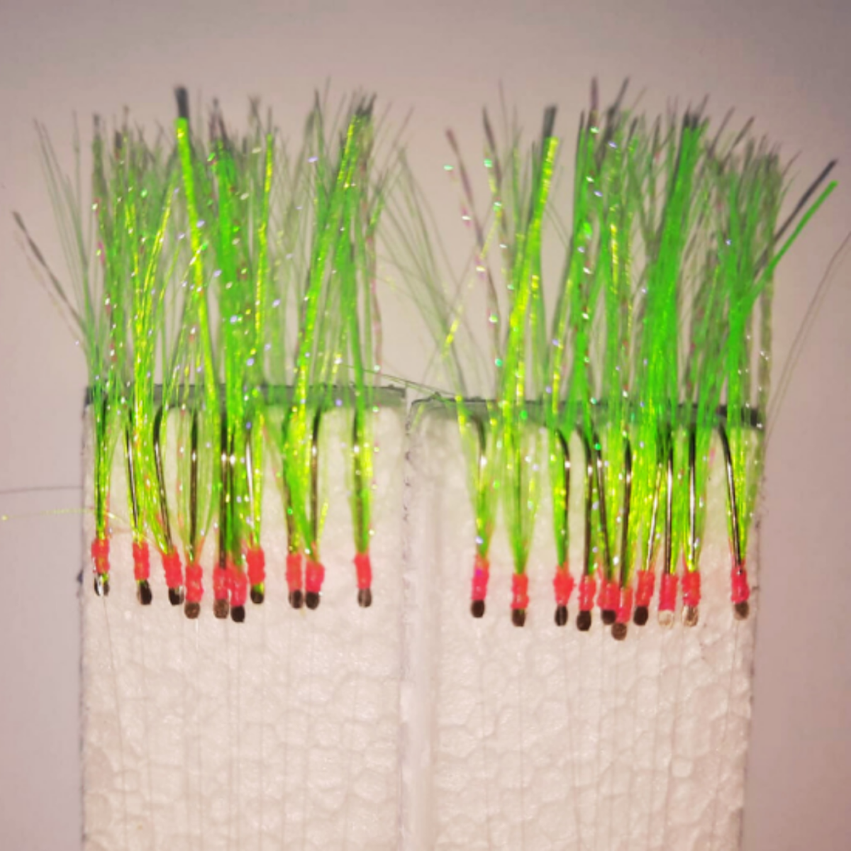 Eagenset Çapari İstavrit Çaparisi 15x12 Beden, Uv Neon Fıstık Yeşili Sim, 11 No Beyaz İğne, 10 İğneli 2li Paket