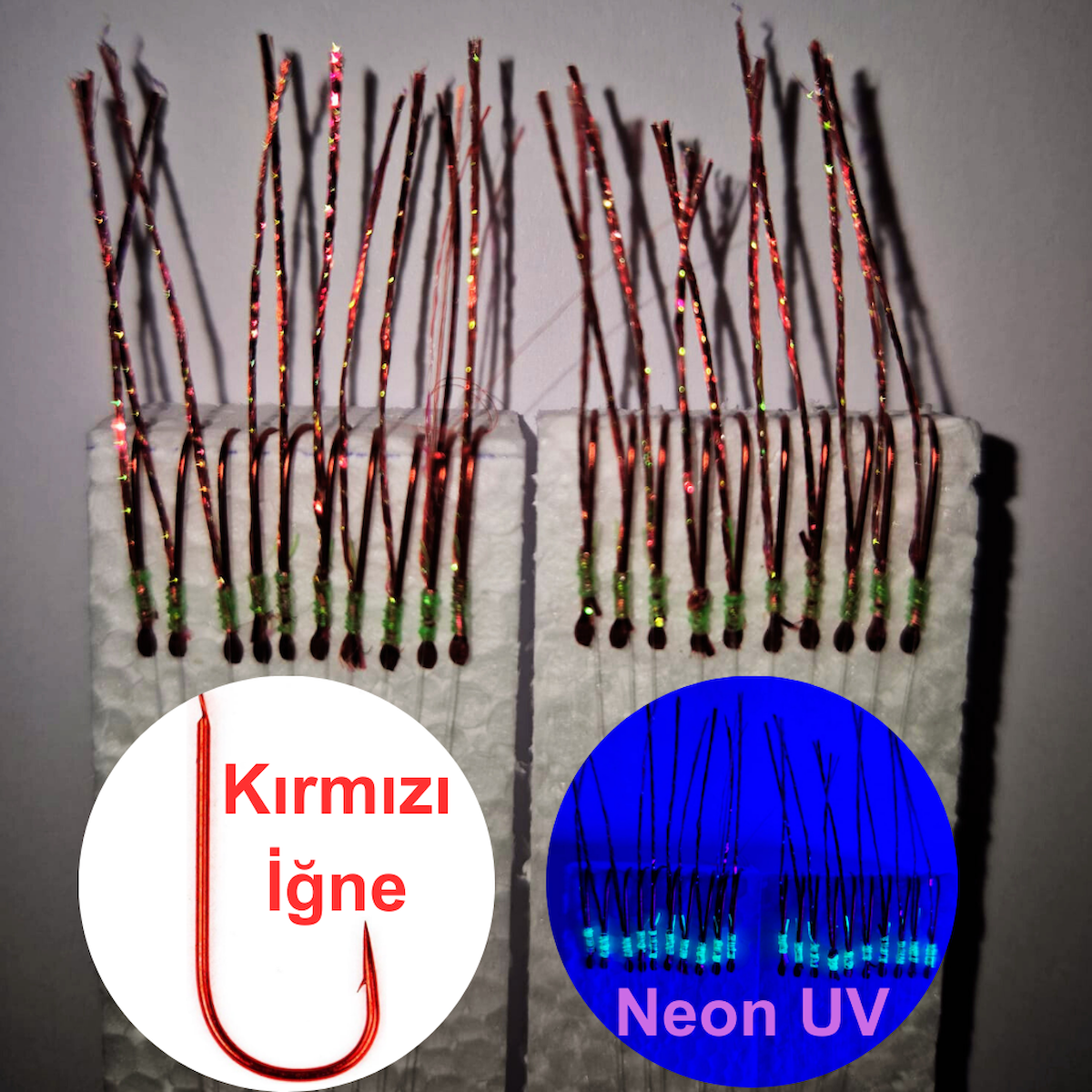 Eagenset Çapari, İstavrit Çaparisi, 15x12 Beden, Uv Neon Kırmızı Sim, 11 No Kırmızı İğne, 10 İğneli Çapari 2li Paket