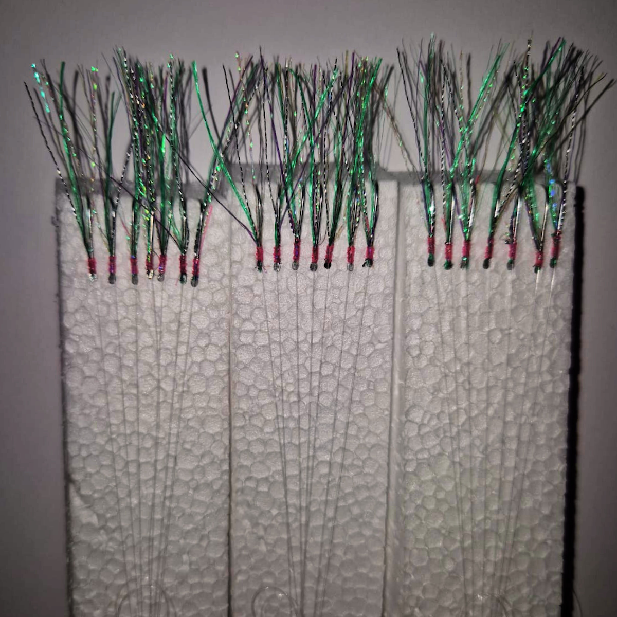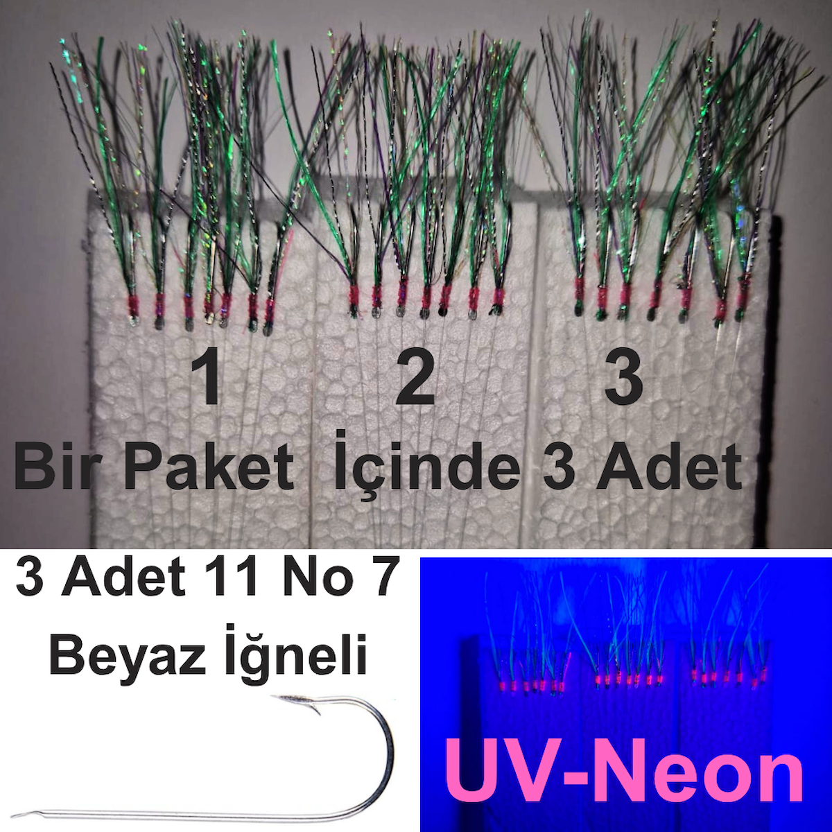 Eagenset Çapari, İstavrit Çaparisi, 25x12 Beden, Ultraviyole Uv Neon Koyu Yeşil Sim, 11 No Beyaz 7 İğneli, 3lü Paket