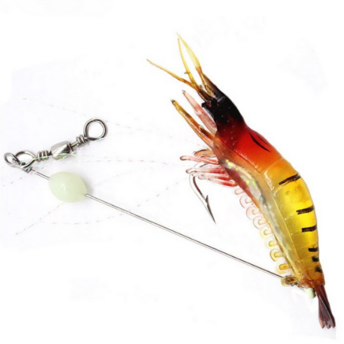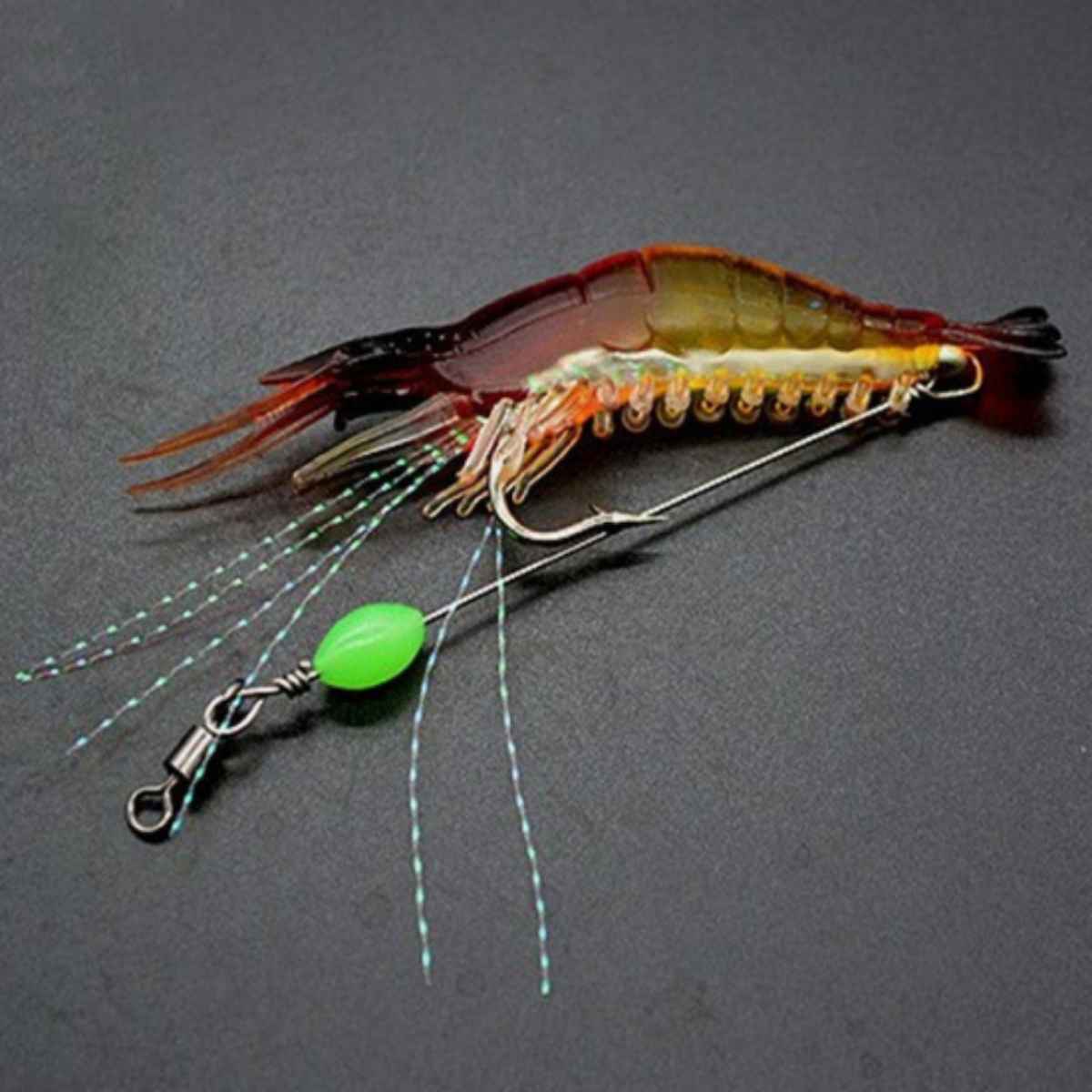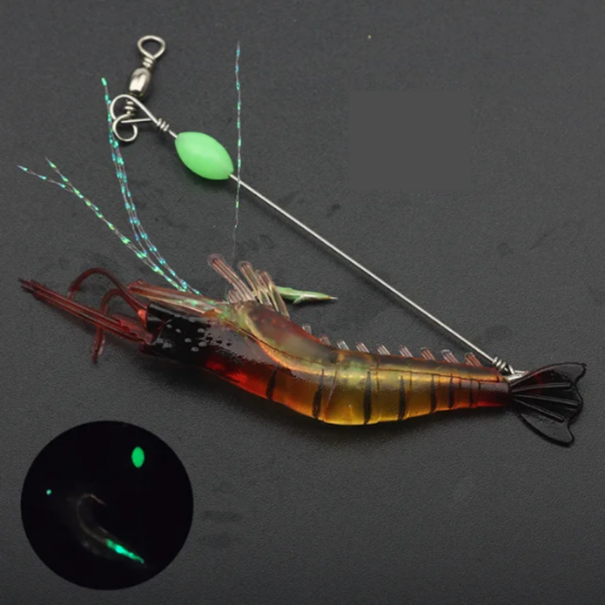Eagenset Fosforlu Glow İğneli, Boncuklu Silikon Karides Yapay Yem Kırmızı