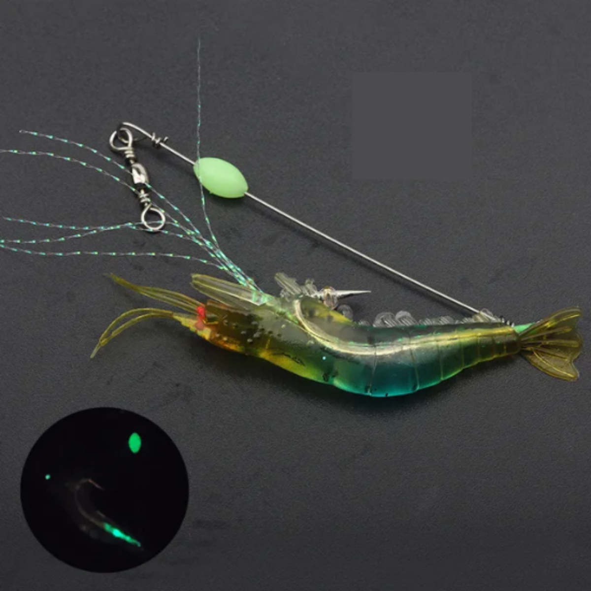 Eagenset Fosforlu Glow İğneli, Boncuklu Silikon Karides Yapay Yem Mavi