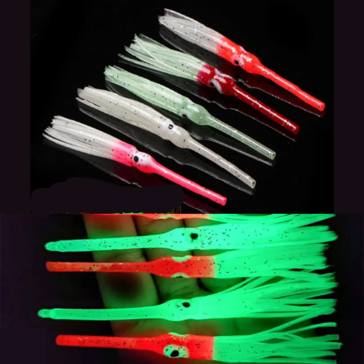 Eagenset Fosforlu Glow ve UV Silikon Kalamar Turuncu Yapay Yem Olta Takımı, Çapari, Jig, Yapım Malzemesi 9 cm 5 Adet