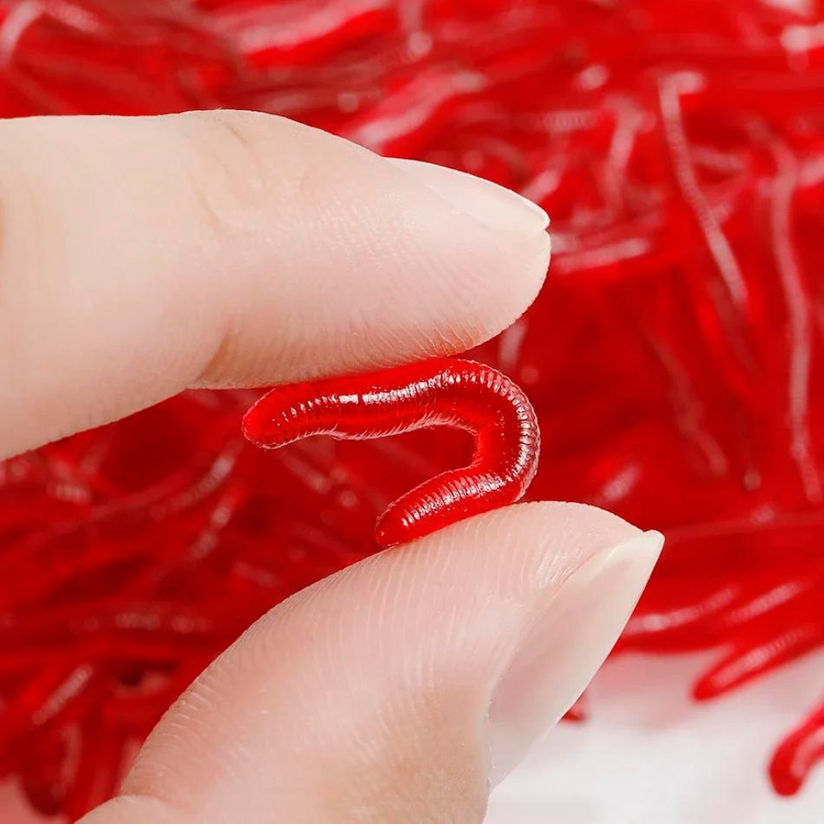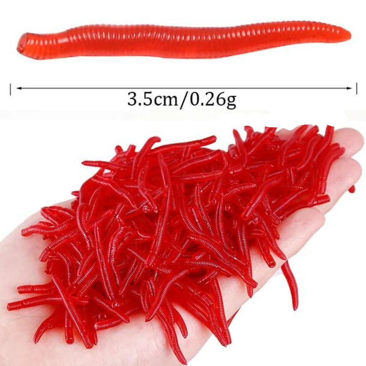 Ürün adı: Eagenset Gerçek Görünümlü Yapay Silikon Solucan Balık Yemi Kırmızı 25 Adet 3,5 cm