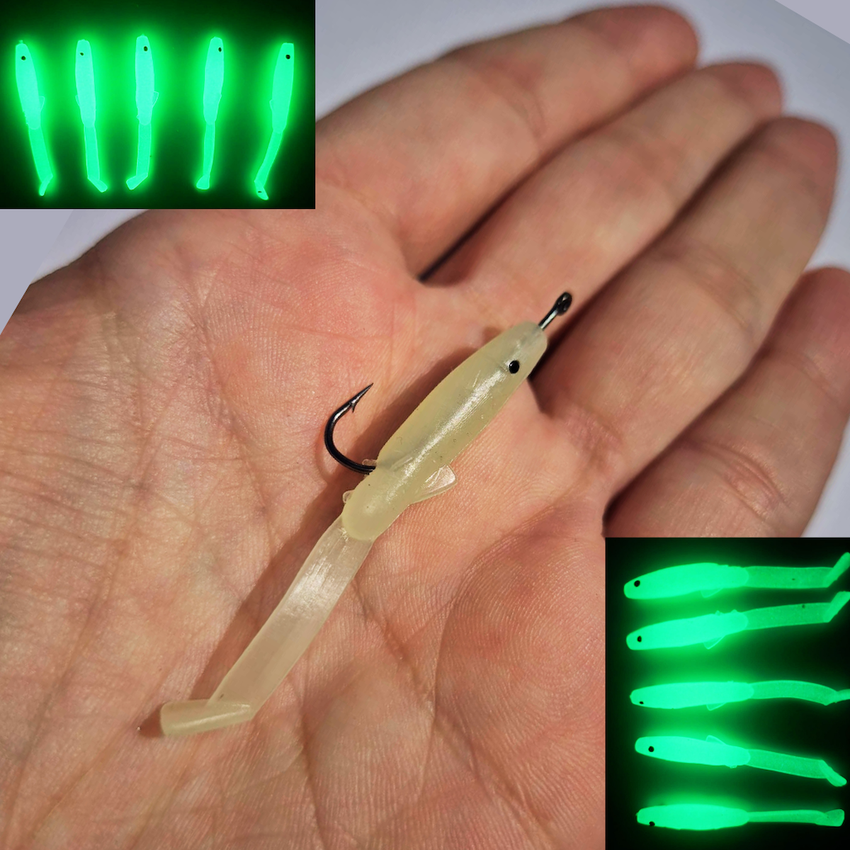 Eagenset İğneli Silikon Balık Fosforlu Glow Luminous Karanlıkta Parlayan İğneli Yapay Yem 5 cm 2 Adet