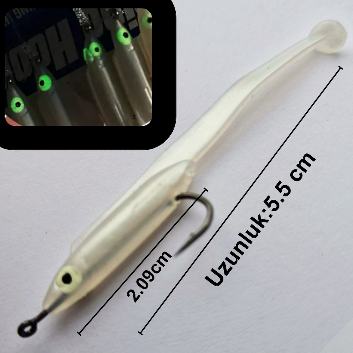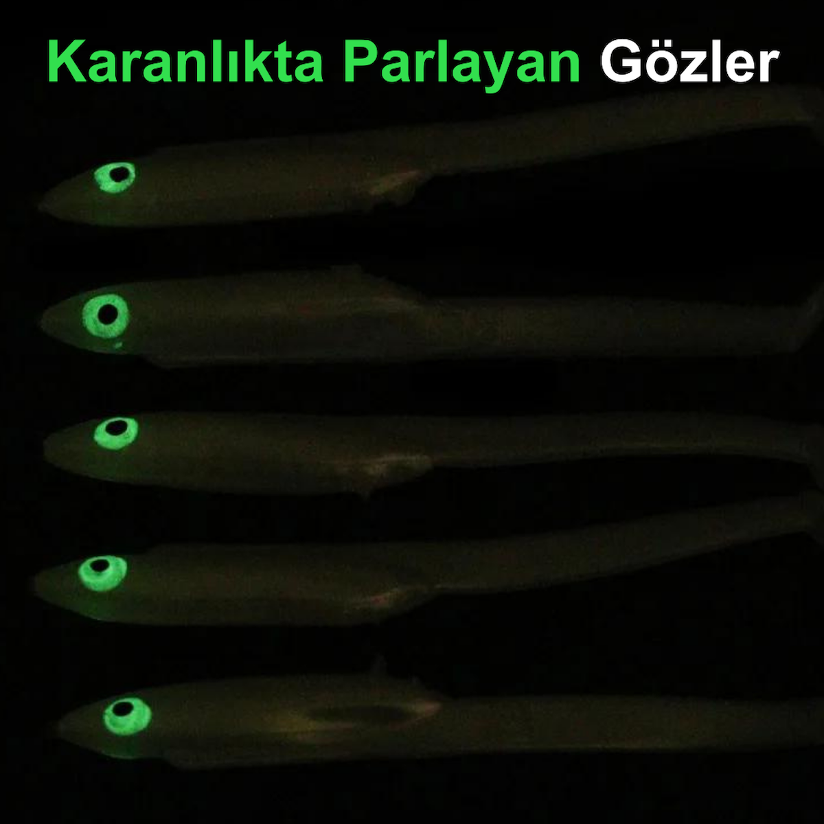 Eagenset İğneli Silikon Yem 5,5 Cm Beyaz Fosforlu Glow Karanlıkta Parlayan Gözler (2 Adet)