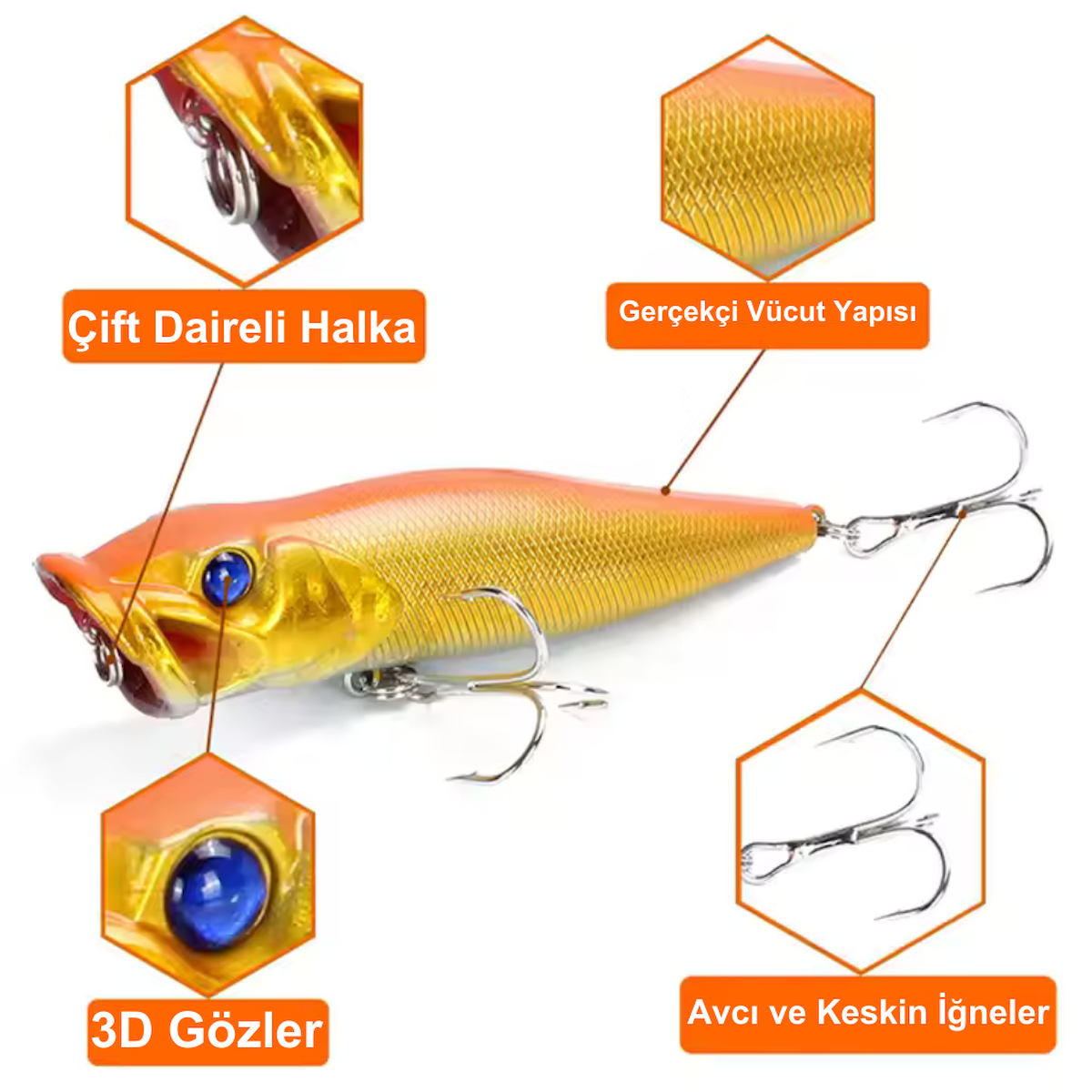 Eagenset Popper Yapay Yem 9 cm – 12 gram Maket Balık, Suni Yem, 1 Adet Model:3