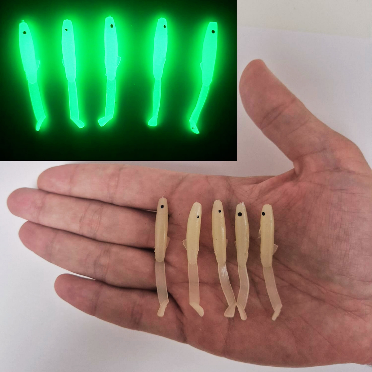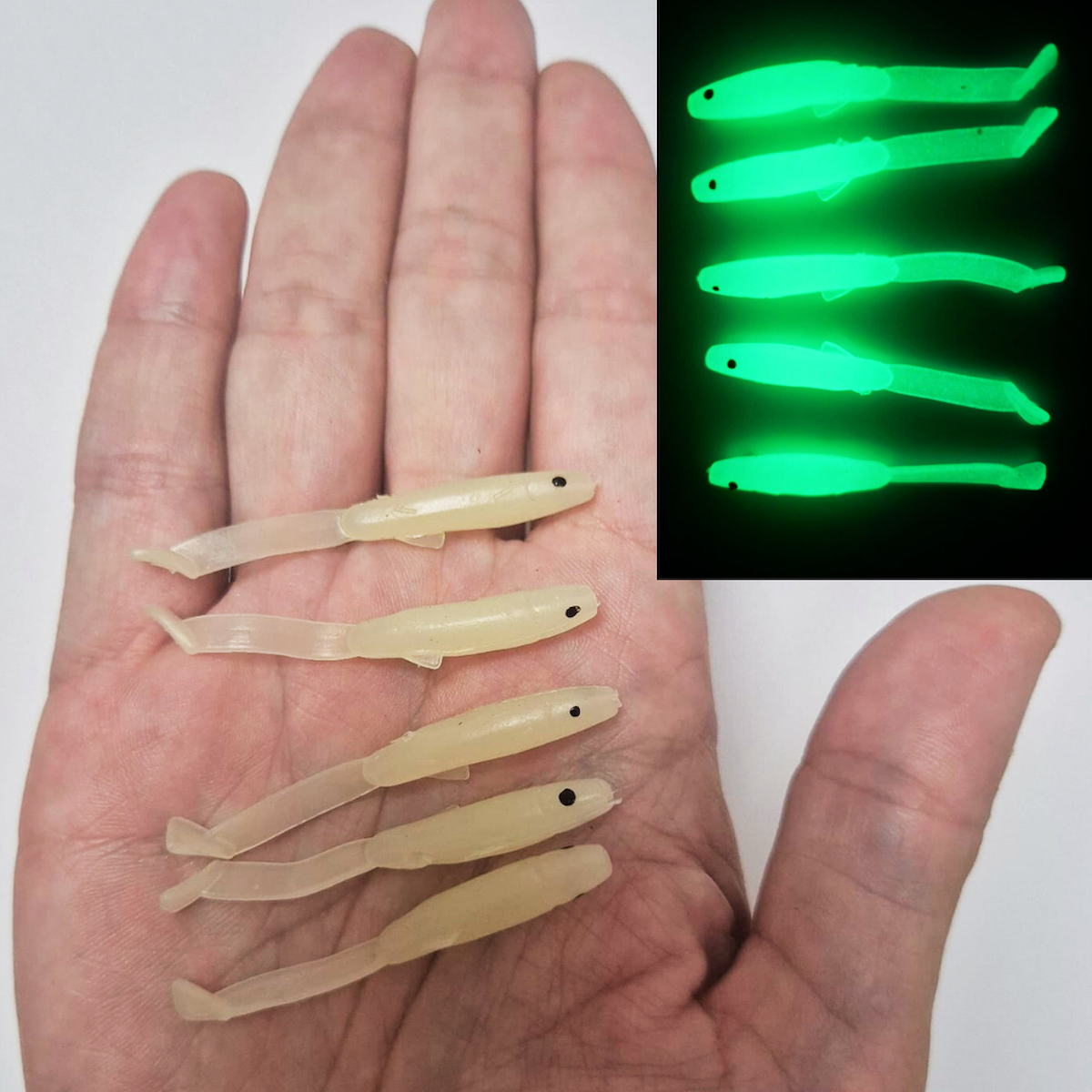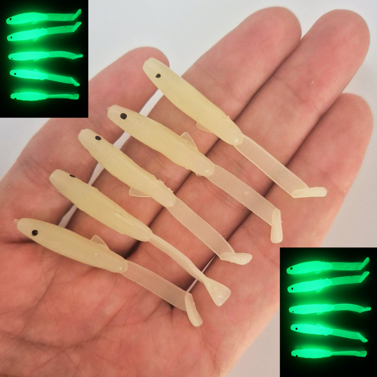 Eagenset Silikon Balık Fosforlu Glow Luminous Karanlıkta Parlayan Yapay Yem 5 cm 5 Adet