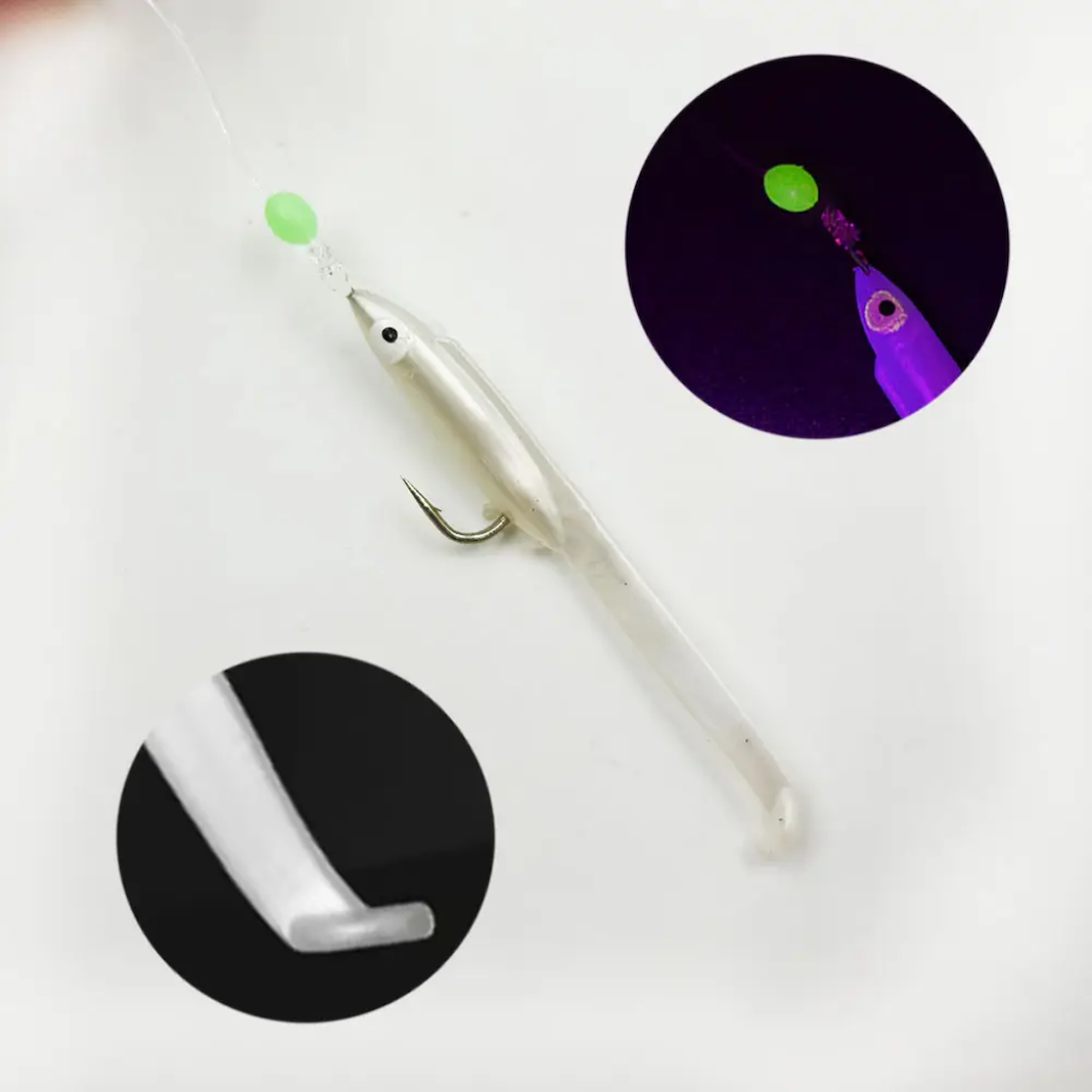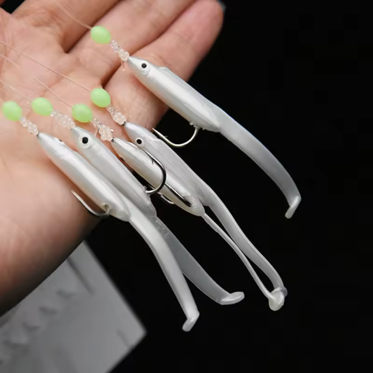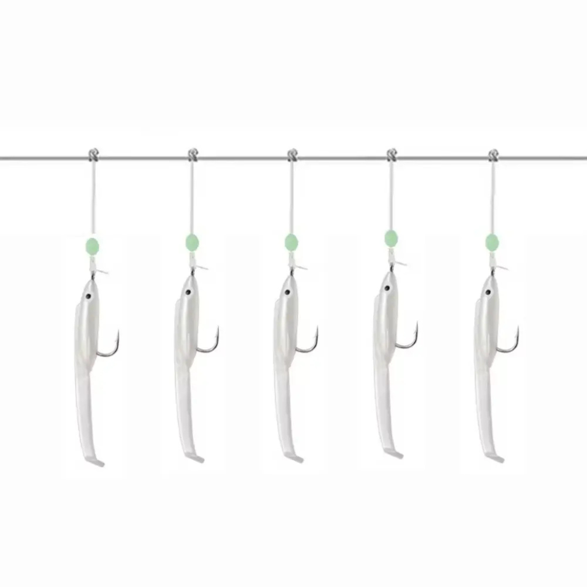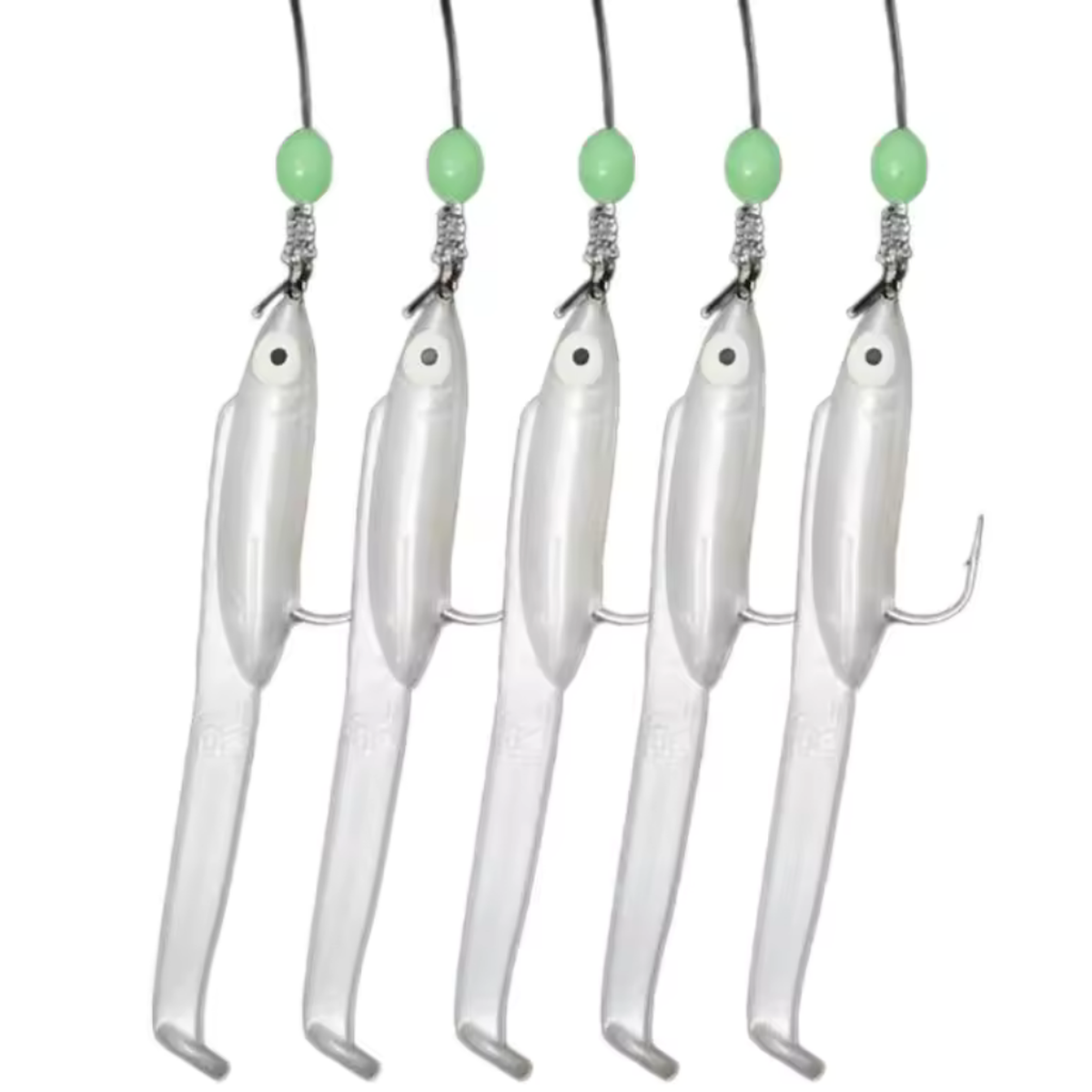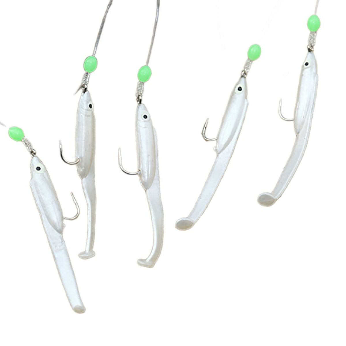 Eagenset Silikon Balıklı Çapari 5.5 Cm (2 Adet) Silikon At Çek Takımı Beyaz Fosforlu Glow Gözler ve Fosforlu Glow Boncuklu