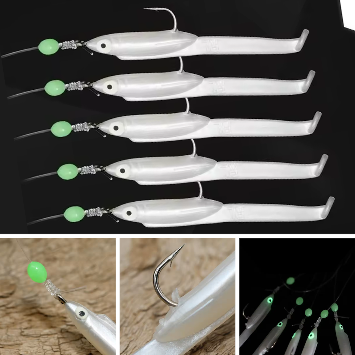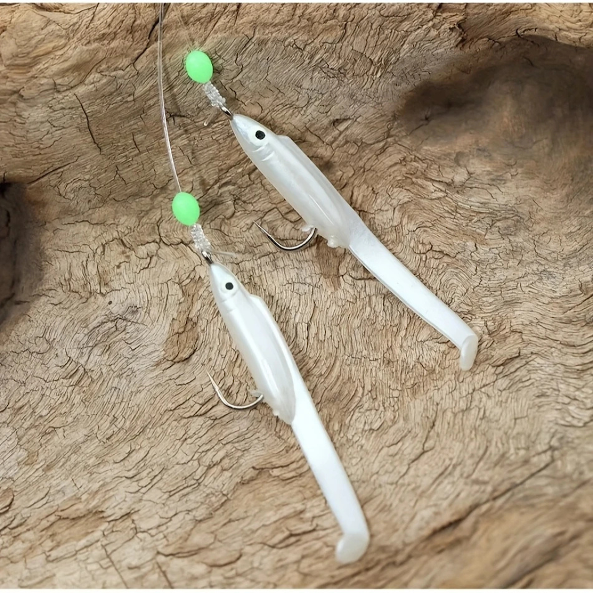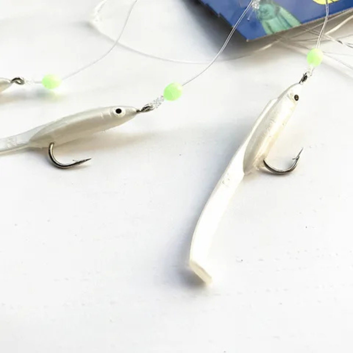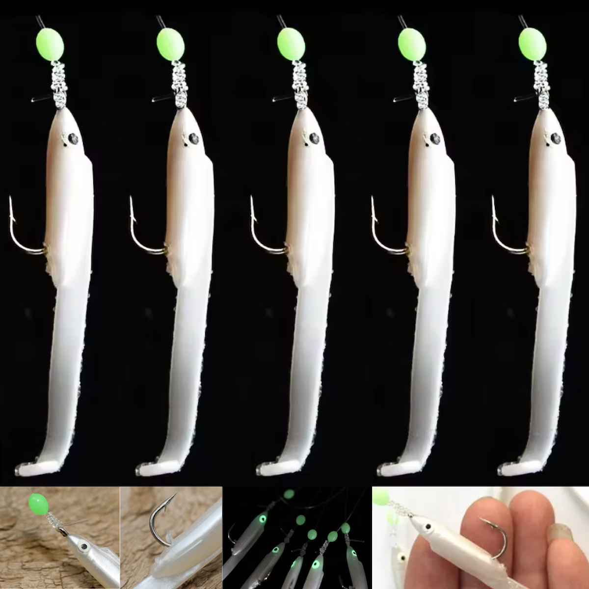 Eagenset Silikon Balıklı Çapari 5.5 Cm (2 Adet) Silikon At Çek Takımı Beyaz Fosforlu Glow Gözler ve Fosforlu Glow Boncuklu